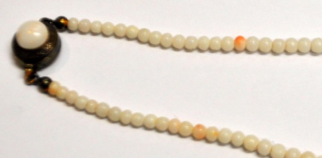Koralkæde, 20. årh. Hvid og lyserøde koraller. L.: 40 cm.