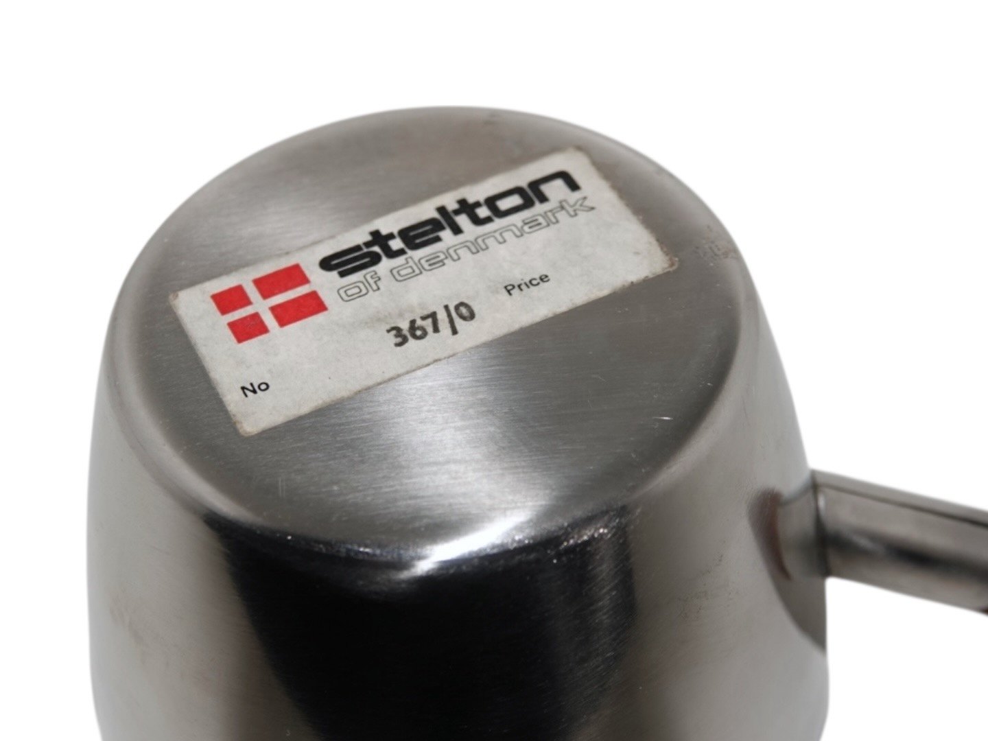 Stelton rustfrit stål, lille sovsekande / smørnæb med håndtag i teaktræ.