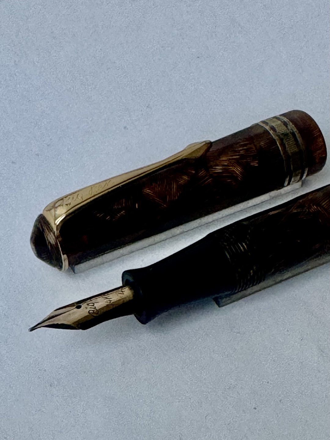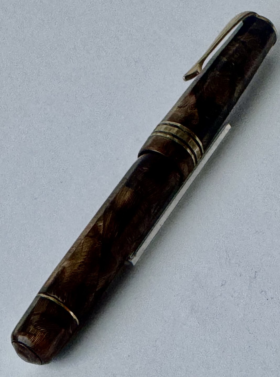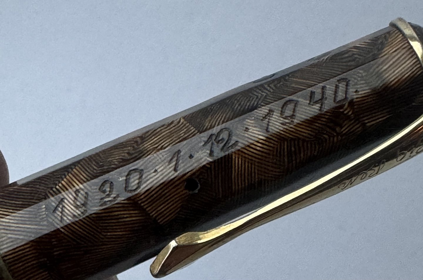 Mindre 12-kantet Big Ben fyldepen med piston filler. Blæk-påfyldnings systemet skal repareres så pennen igen kan optage blæk og skrive igen. Ellers i god stand uden skader. Big Ben indgraveret på den ene side af hætten. På den anden side står der 1920 1.12 1940. Længde: 11,7 cm
