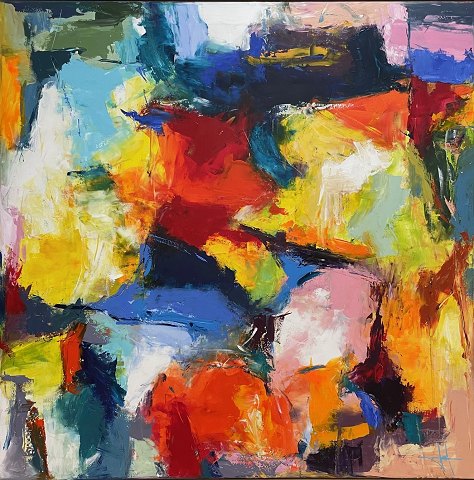 "Komposition" Flot moderne maleri i massiv egetræs svæveramme fra Bogø Design.
