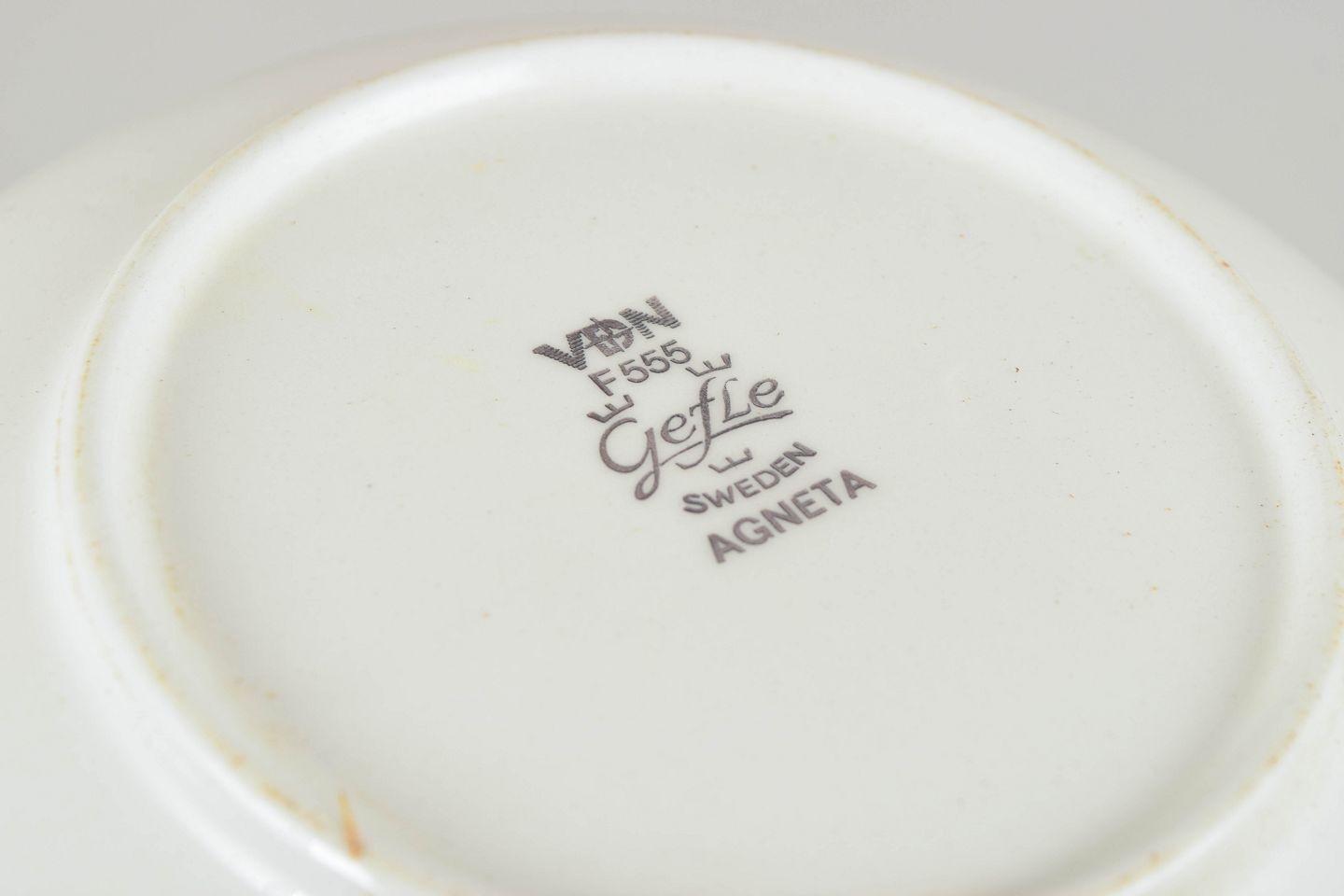Gefle (Gefle Porslinsfabrik), founded in 1910 and later incorporated into the Upsala Ekeby group, created several popular tableware series during the 1960s and 70s, characterised by bold graphic designs and warm colour palettes. The Agneta series is a quintessential example of this period and remains sought-after among collectors of Scandinavian retro stoneware.