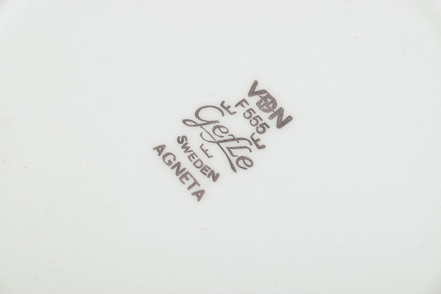 Gefle (Gefle Porslinsfabrik), grundlagt i 1910 og senere en del af Upsala Ekeby, var kendt for sine stærke, grafiske dekorer og varme farvepaletter i 1960’erne og 70’erne. Serien Agneta er et klassisk eksempel på fabrikkens karakteristiske design fra perioden og er i dag populær blandt samlere af skandinavisk retro-stentøj.