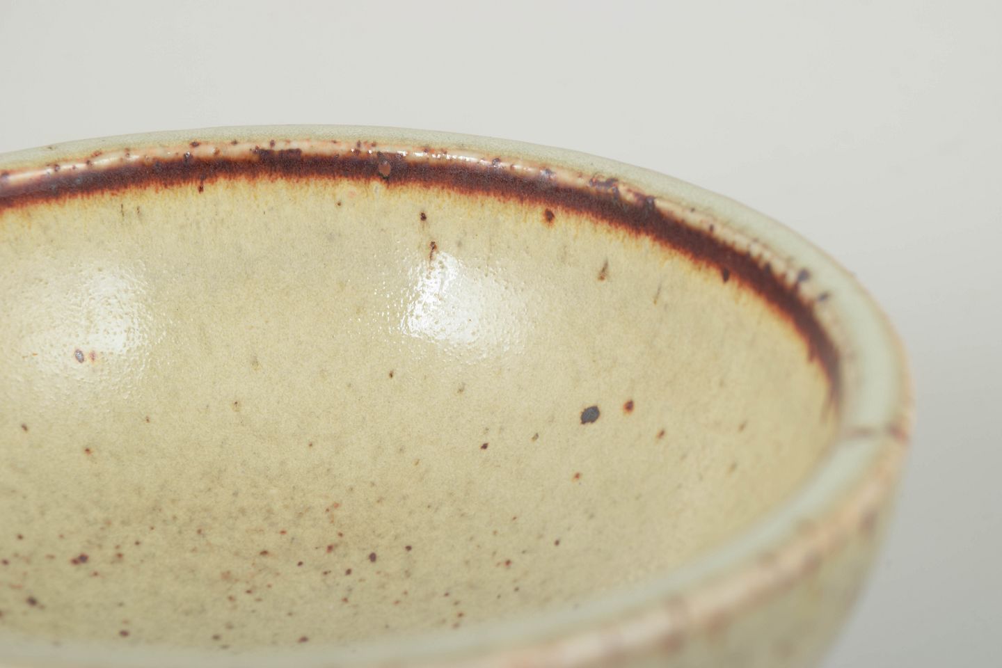 Thrown stoneware bowl on foot with a warm, speckled light glaze and brown accents, characteristic of Drejargruppen’s handcrafted aesthetic of the 1970s.