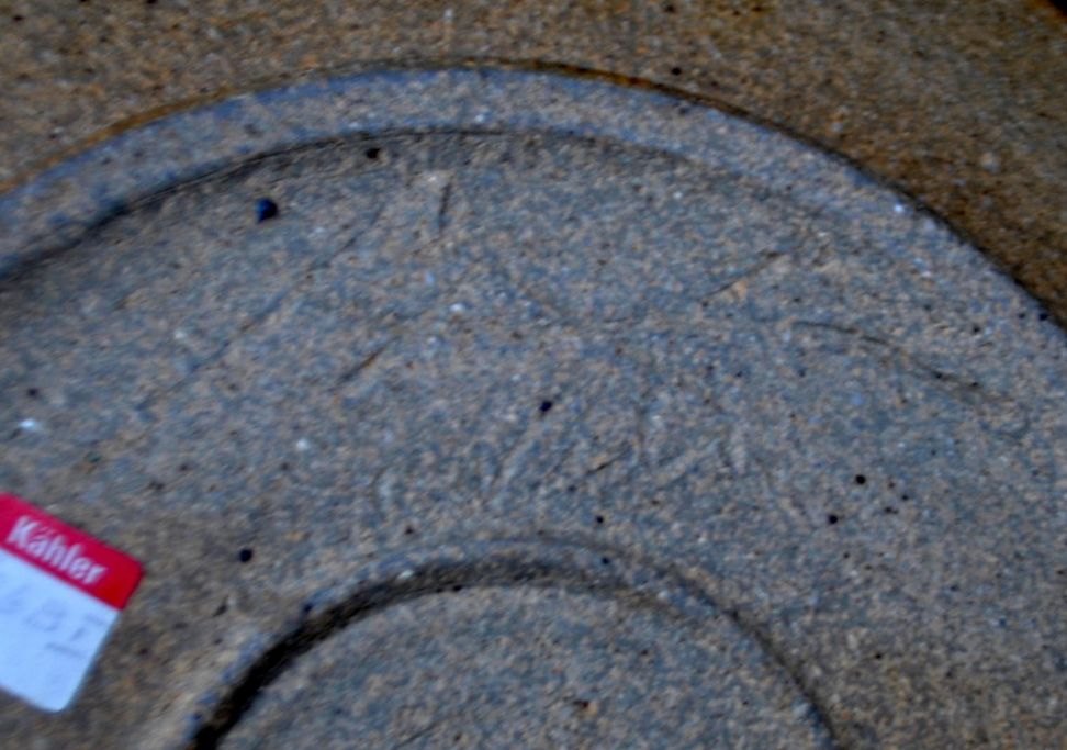 Kähler, Nils Joakim (1906 - 1979): Stort fad. Udført for H. A. Kähler, Næsteved. Turkis glasur. Med kantdekoration. Signeret. H: 9,5 cm. Dia.: 31 cm.