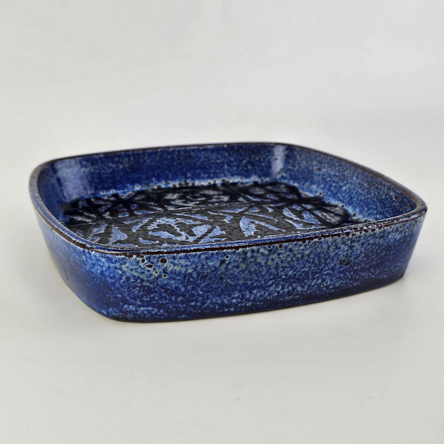 Firkantet skål i fajance fra Baca serien med mønster i blå og sort