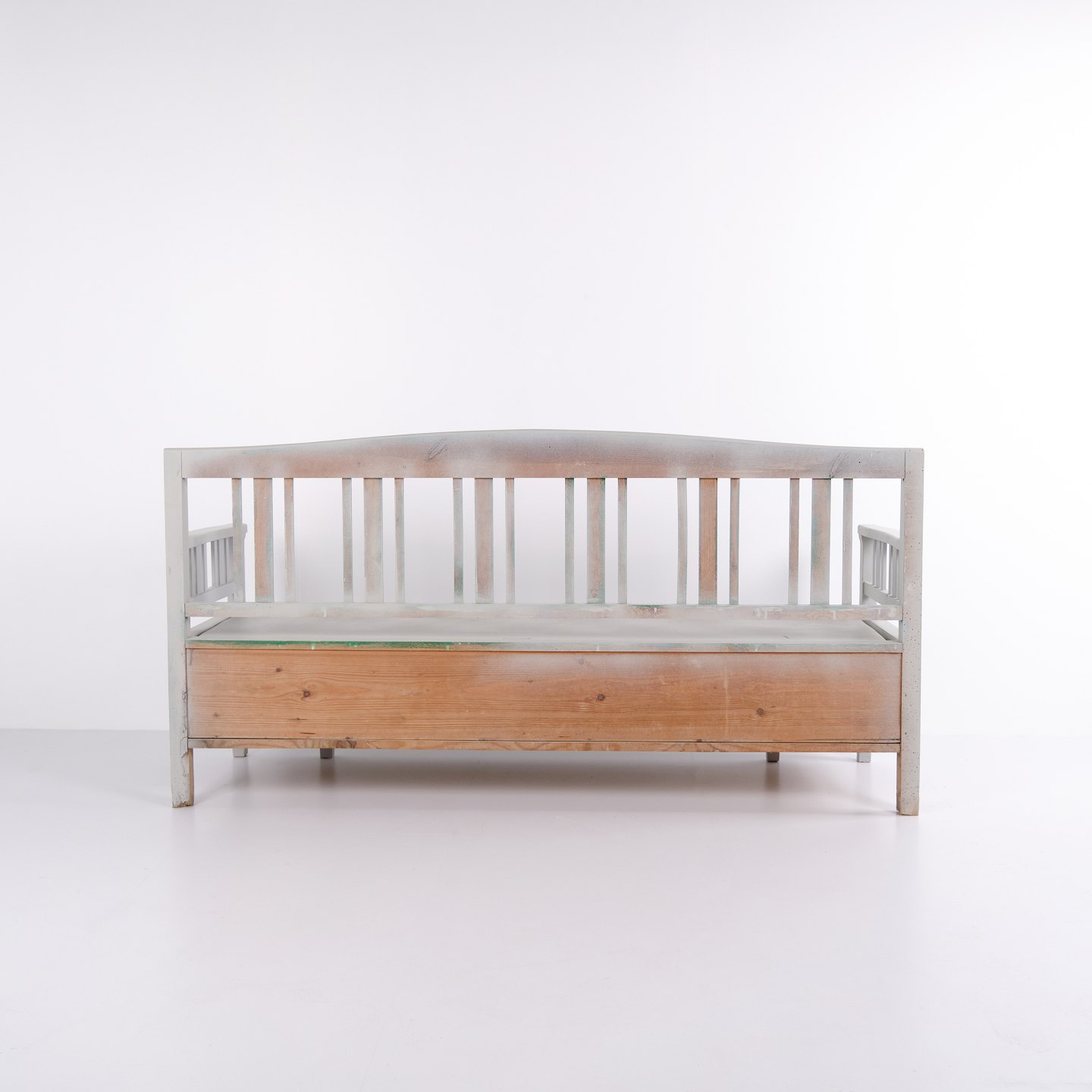 Svensk slagbænk - Gråmalet - Antik - bemalet fyrretræ - År 1860'erne