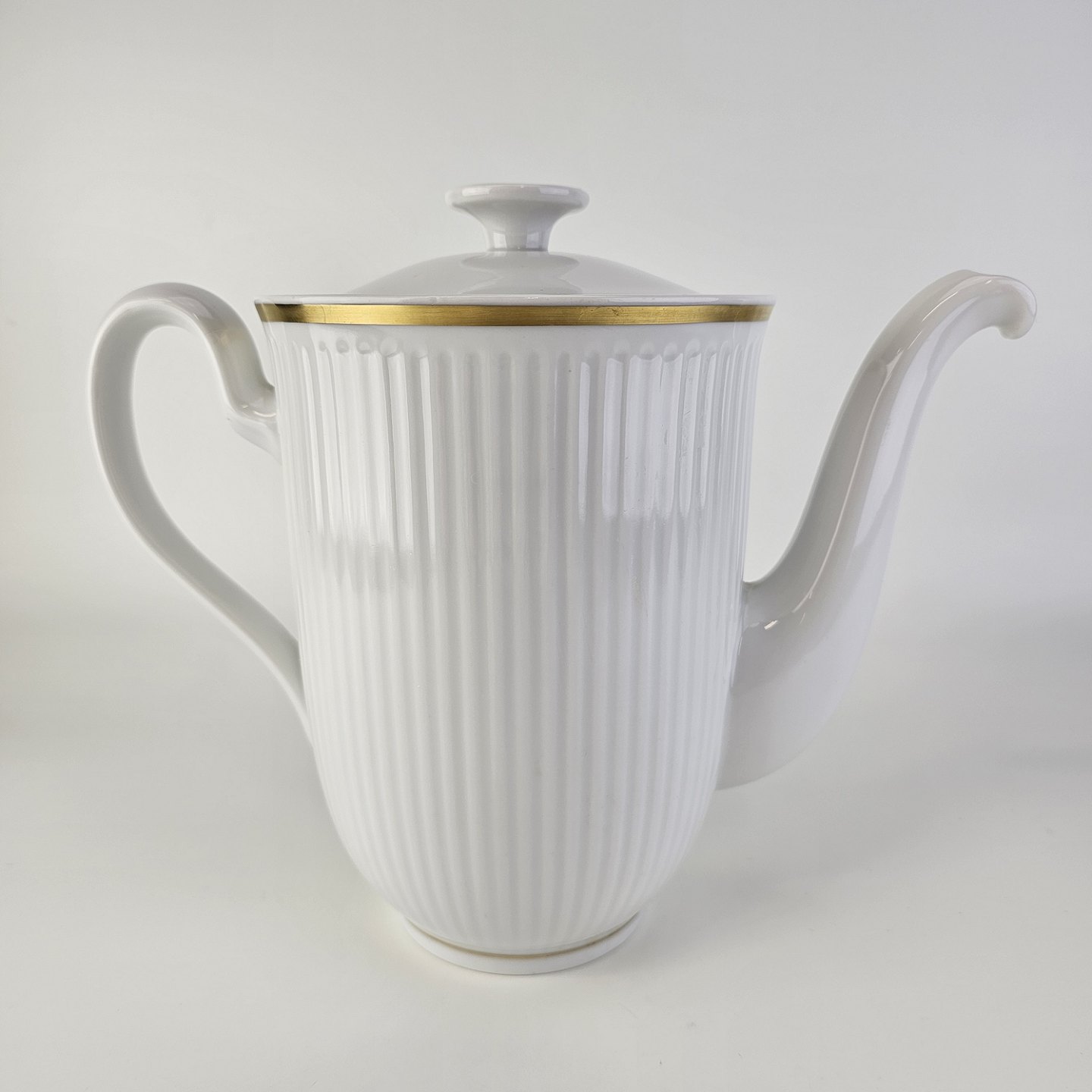 Tunna er riflet hvidt porcelæn dekoreret med guldkant