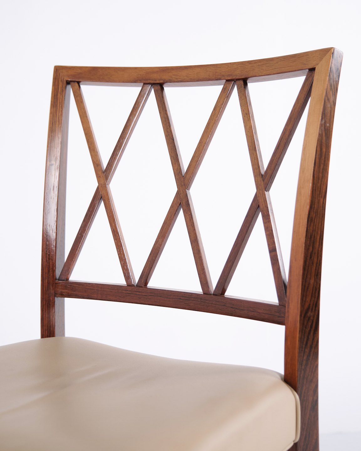 Sæt Af Fire Spisebordsstole - Palisander & Cream Farvet Læder - Ole Wanscher - AJ. Iversen - 1960erne