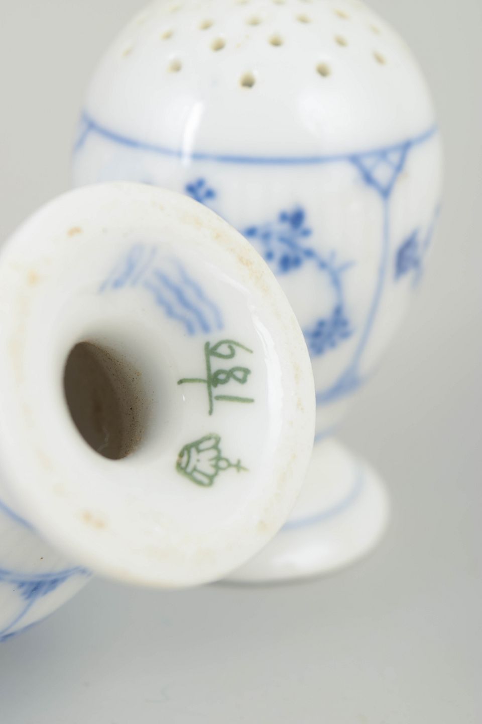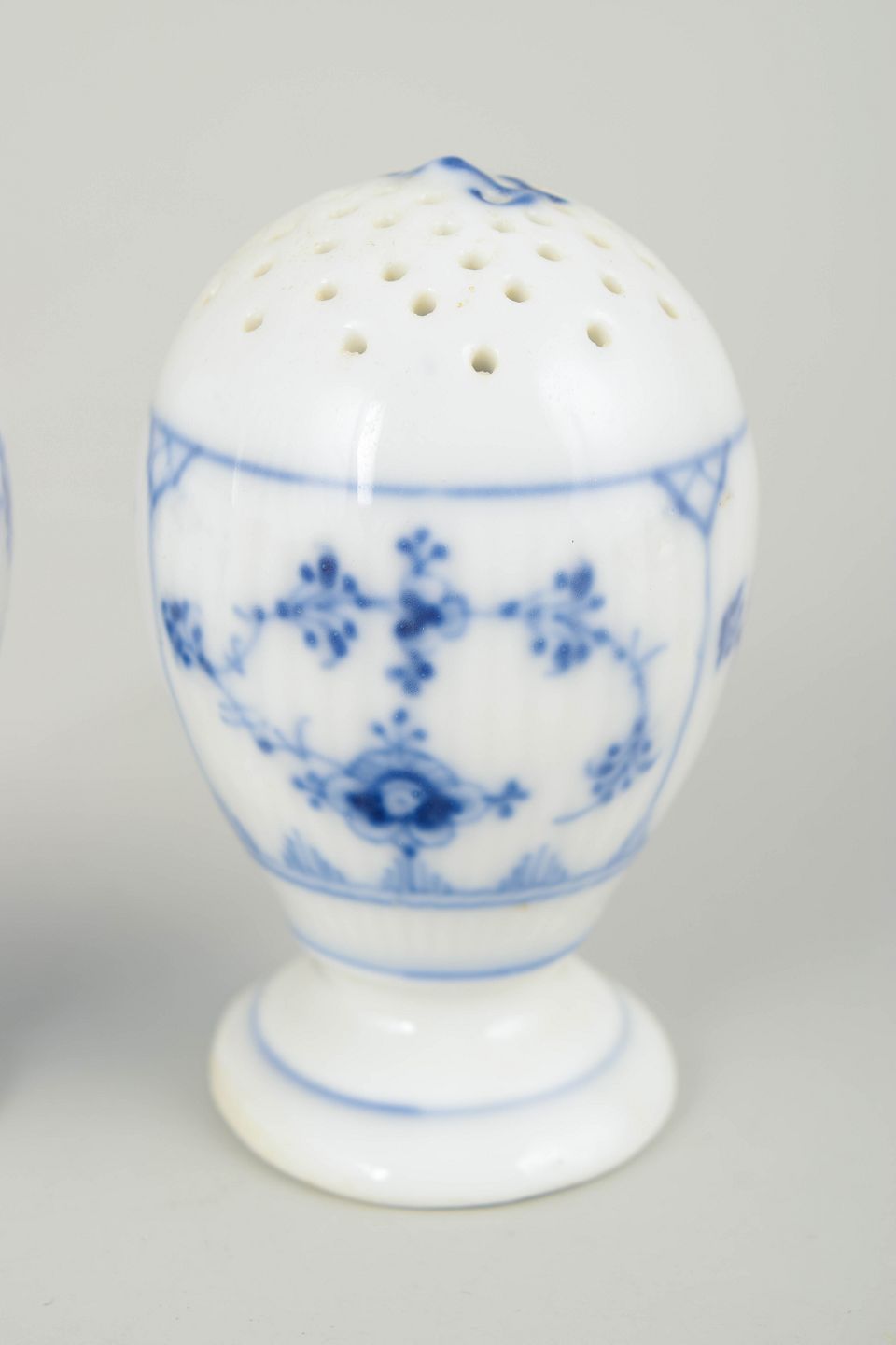 Musselmalet riflet salt- og pebersæt, ca. 1900.