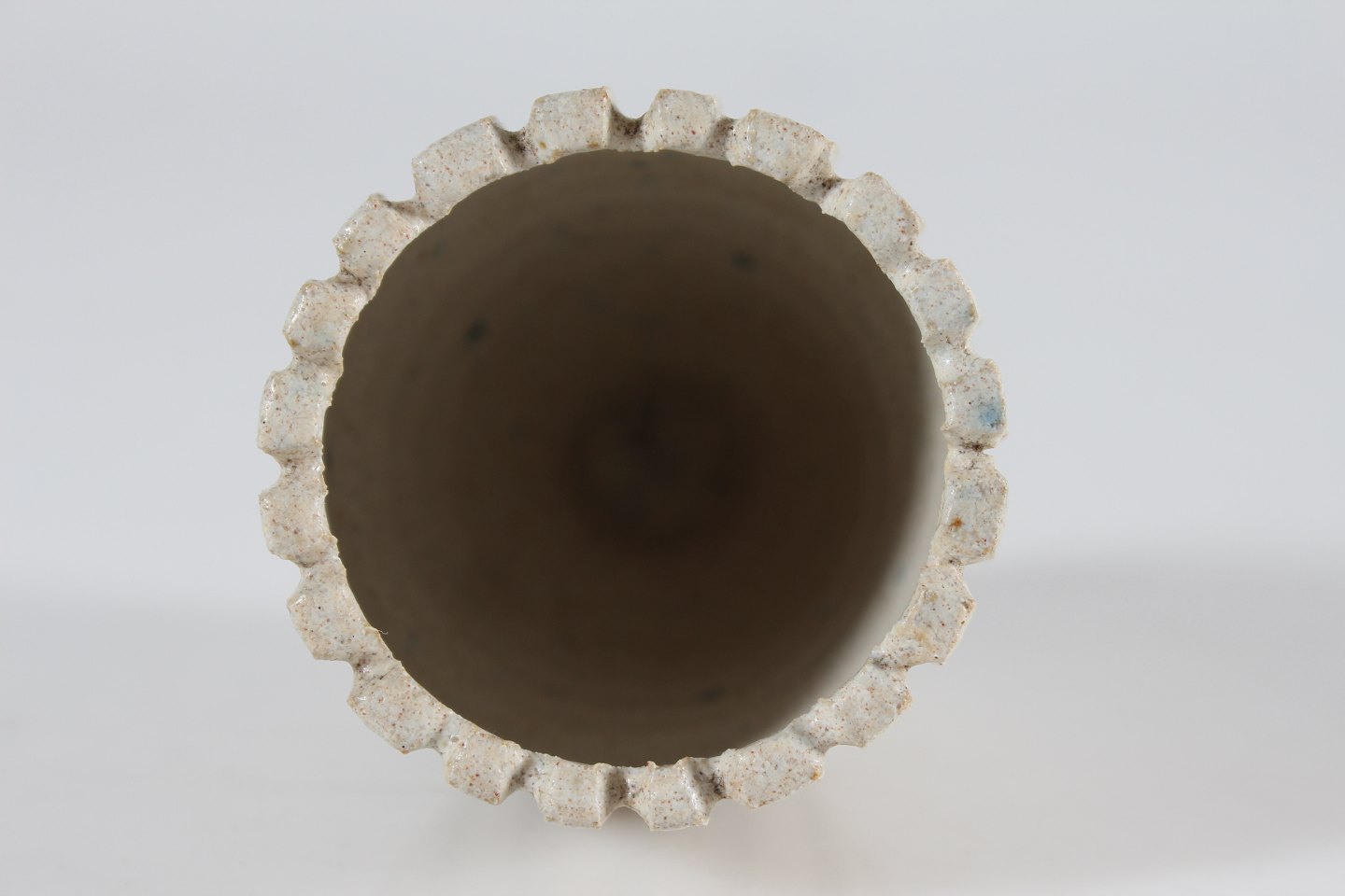 Lille Art Deco vase i rillet stil af sandfarvet stentøj
