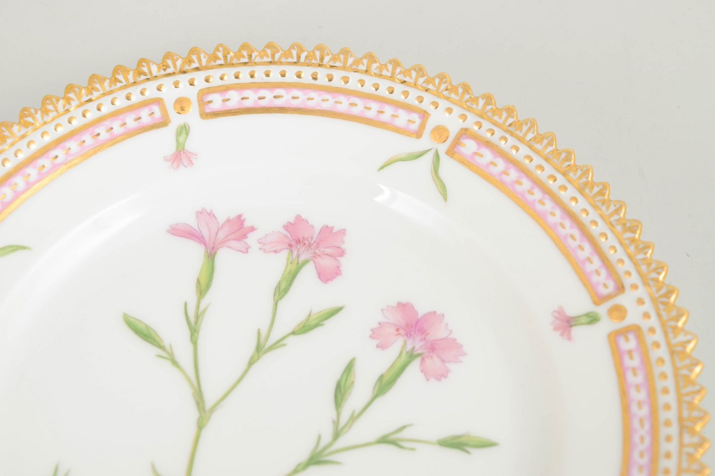 Bio: Flora Danica-stellet blev introduceret i 1790 og regnes blandt Royal Copenhagens mest prestigefyldte produktioner. Dekorationerne er baseret på det monumentale botaniske værk Flora Danica og er kendetegnet ved høj detaljerigdom og fremragende håndværksmæssig kvalitet. Mindre dele som sidetallerkener har traditionelt været anvendt til dessert eller mindre anretninger og er i dag eftertragtede samlerobjekter.