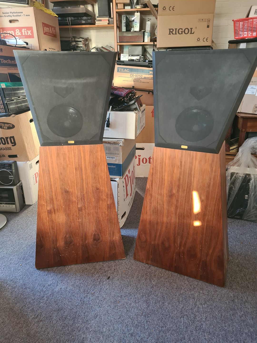 Par gulvhøjtalere SPICA Angelus. Testet og lyder fint. Fremstår dog med lidt skrammer blandt andet ved basen af højtalerne. (Billede)