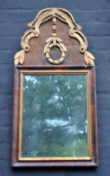 Danish Louis XVI mirror, walnut veneer, circa 1780. H.: 70 cm. W.: 34 cm.