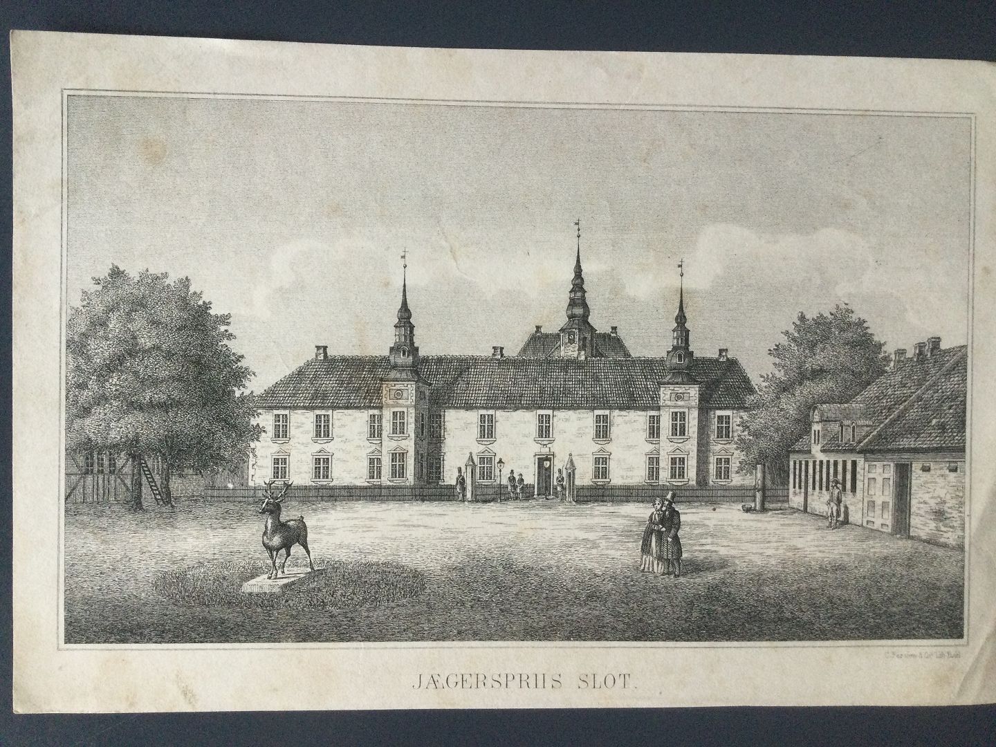 Litografi af Christian Ferslew - Jægerspris Slot ved Frederikssund.