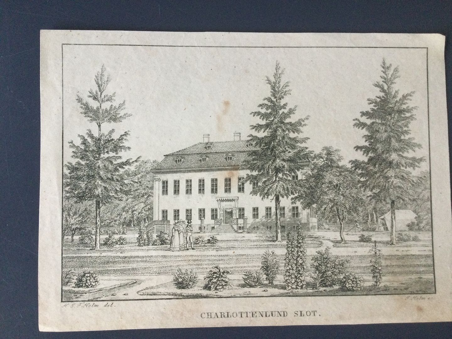 Radering efter kobberstik af Jens Holm efter tegning af H.G.F. Holm - Charlottenlund Slot.