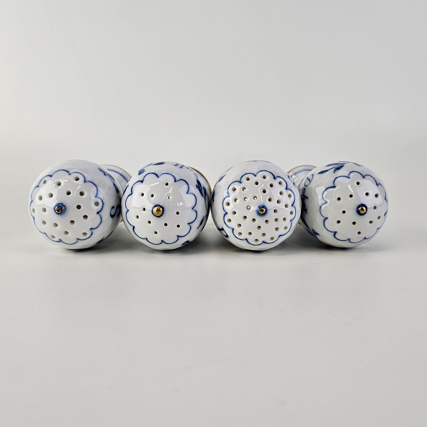 Salt- og peberbøsser i porcelæn fra stellet Kipling i fire varianter uden propper