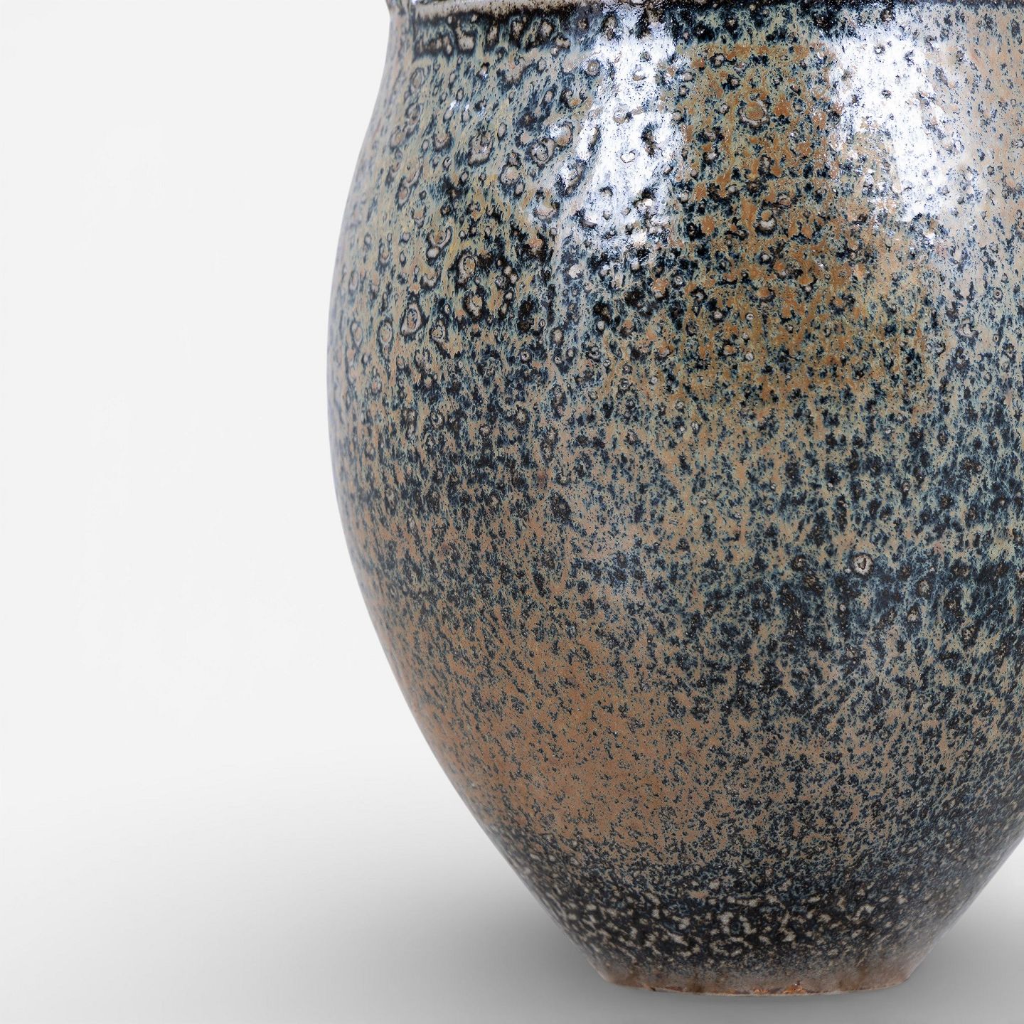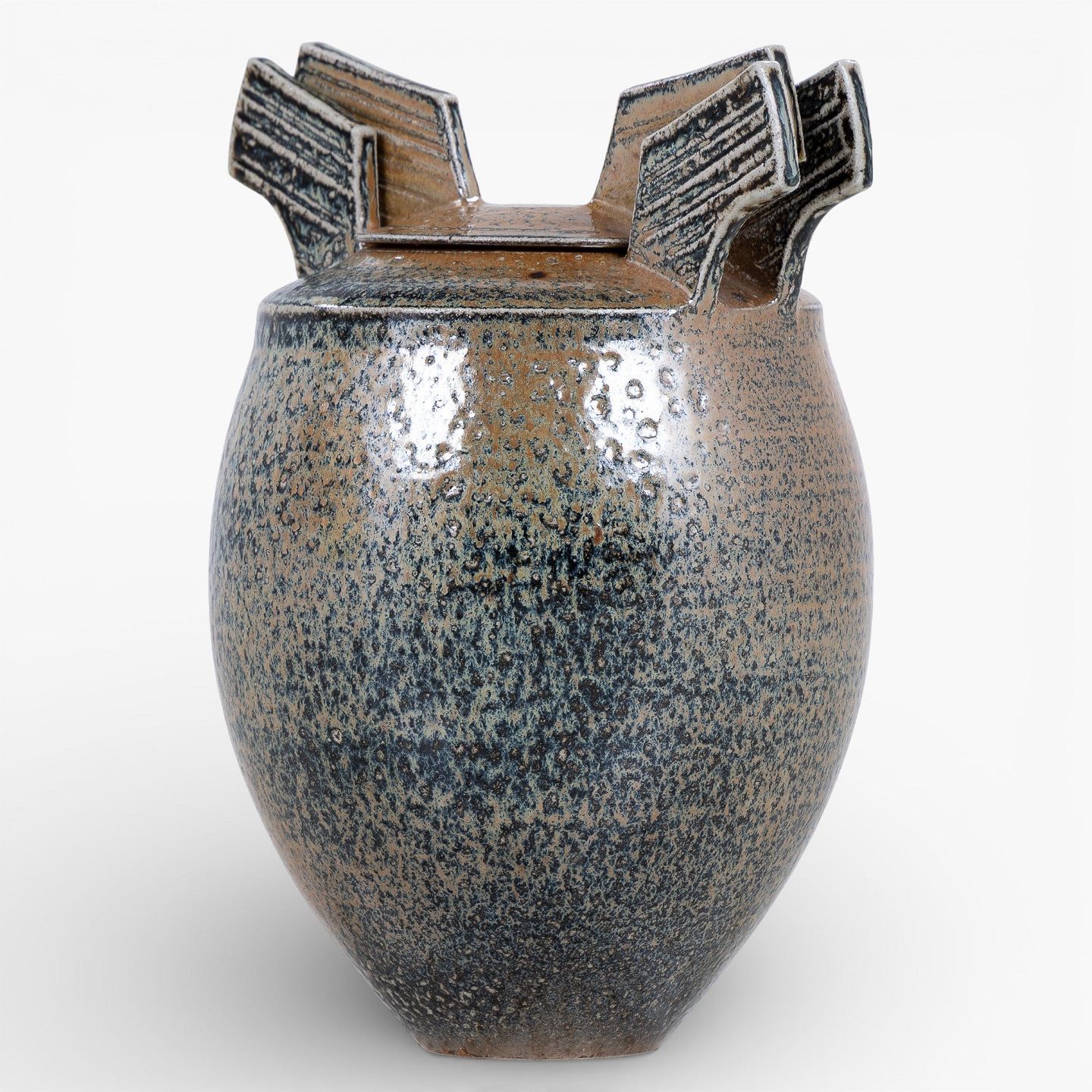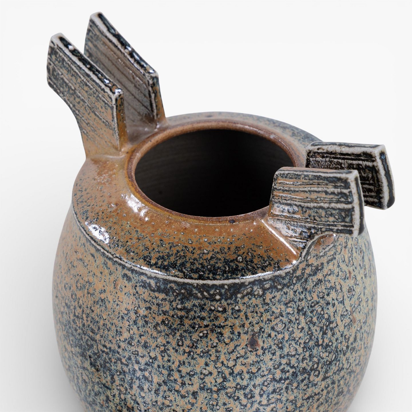 Unik lågkrukke i stentøj med brun saltglasur. Signeret 'Birck 85'.