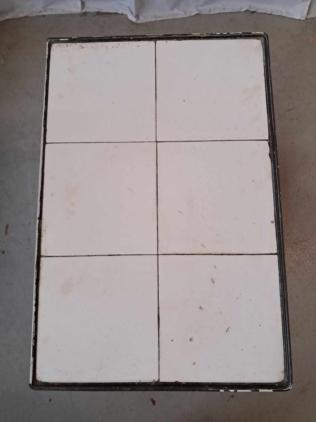 Lille gasbord i malet metal med fliser, fra 1930erne.
