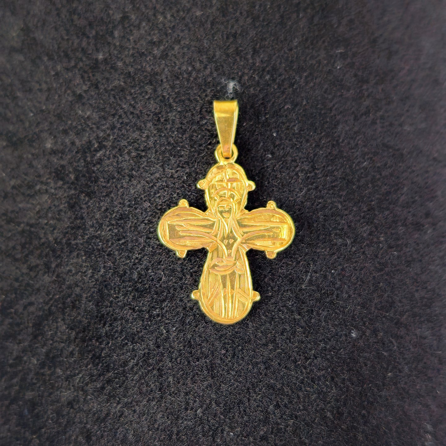Kors vedhæng i 8 kt guld med motiv af Jesus på korset