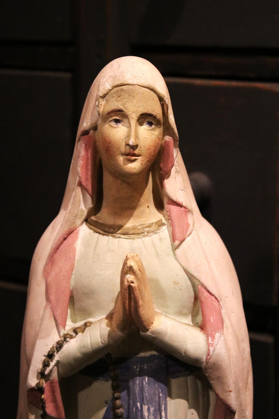 Stor , gammel fransk Madonna figur i gips med fin gammel bemaling og fin patina...