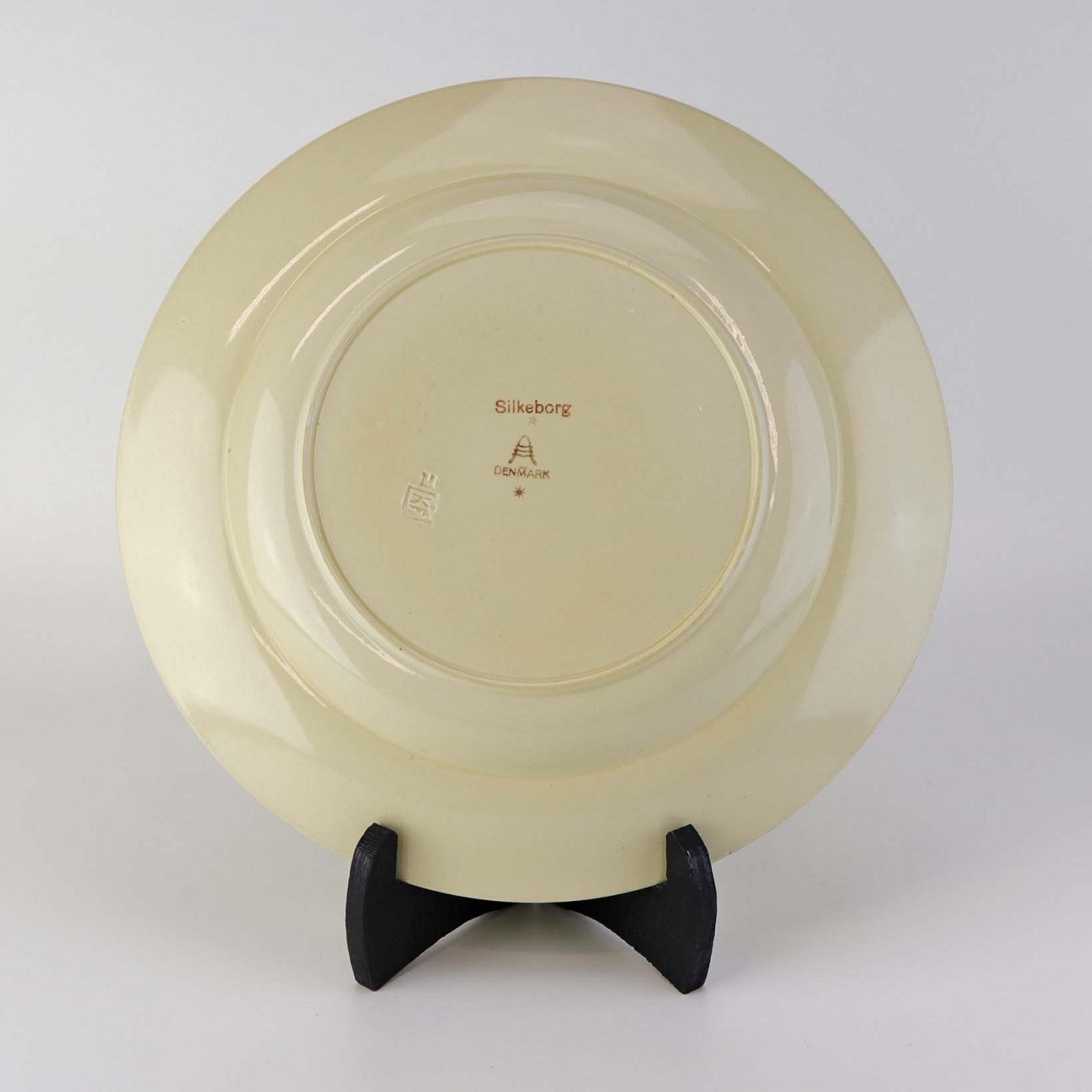 Flad middagstallerken i fajance fra stellet Silkeborg fremstillet i perioden 1937-1939