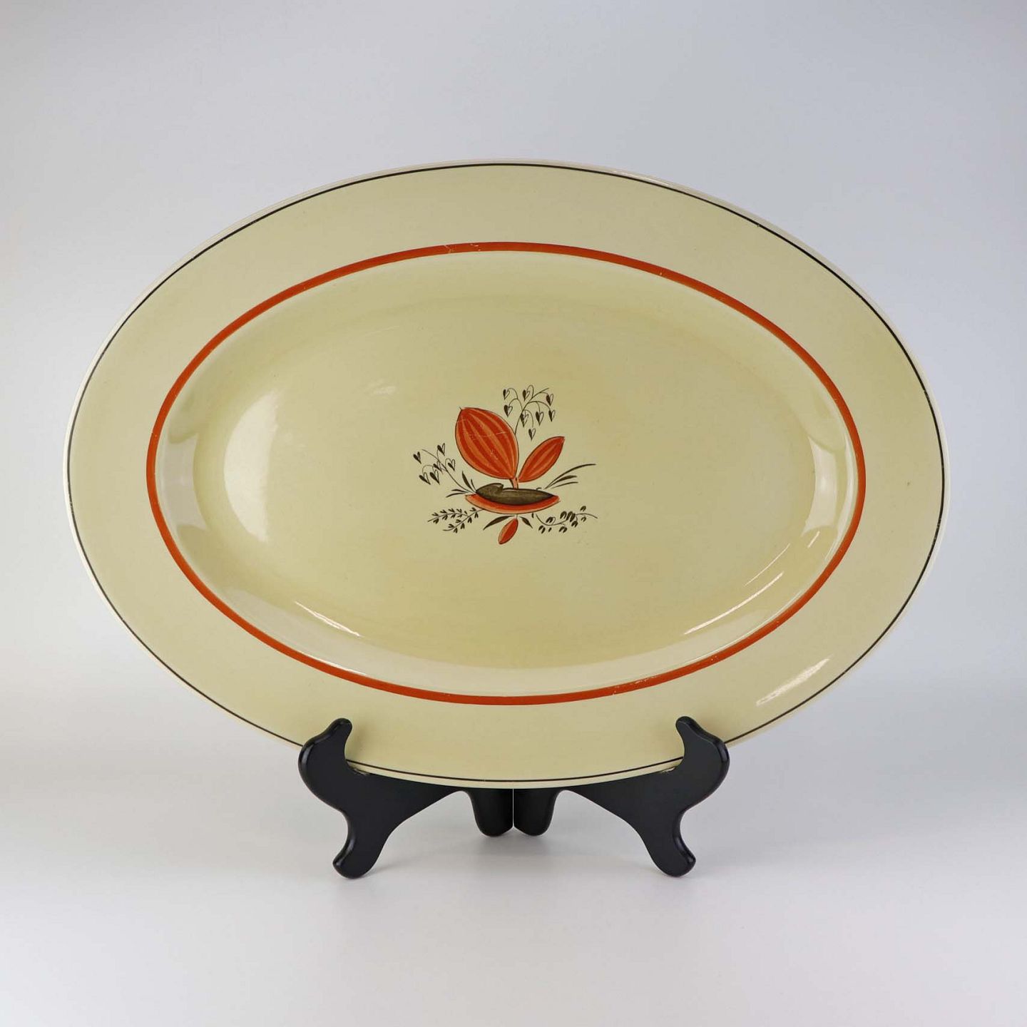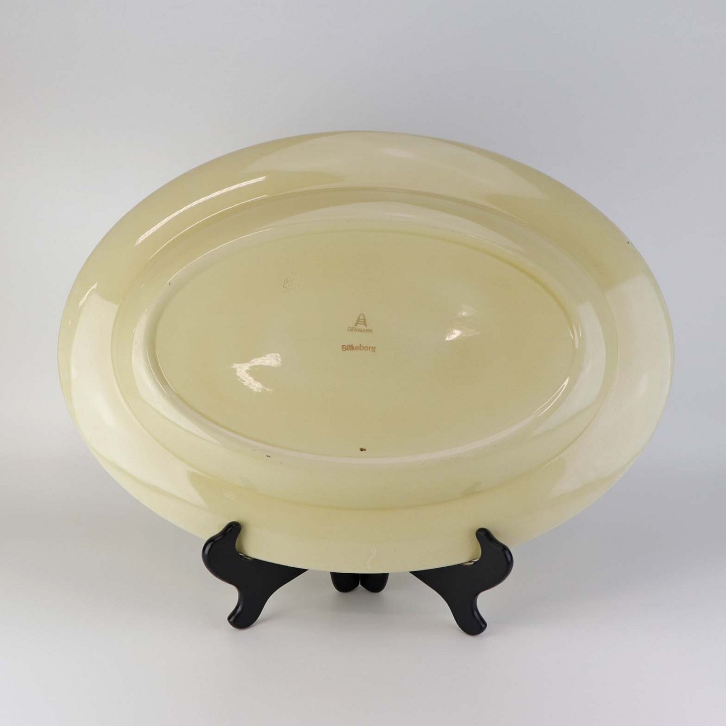 Stort ovalt serverings fad i fajance fra stellet Silkeborg fremstillet i perioden 1937-1939
