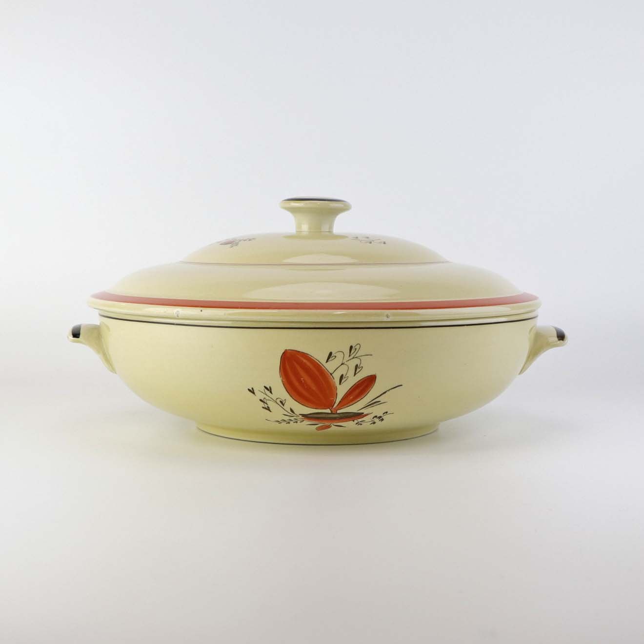 Fremstår med lettere brugsspor på dekorationen samt langs terrinens kant.