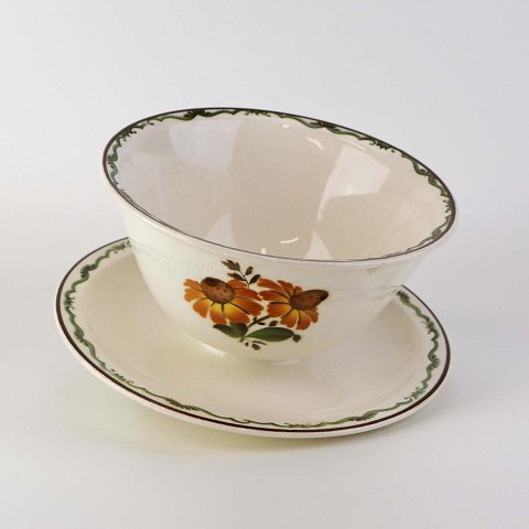 Sovseskål på fast fod i fajance fra stellet Solbrud fremstillet i perioden 1937-1967