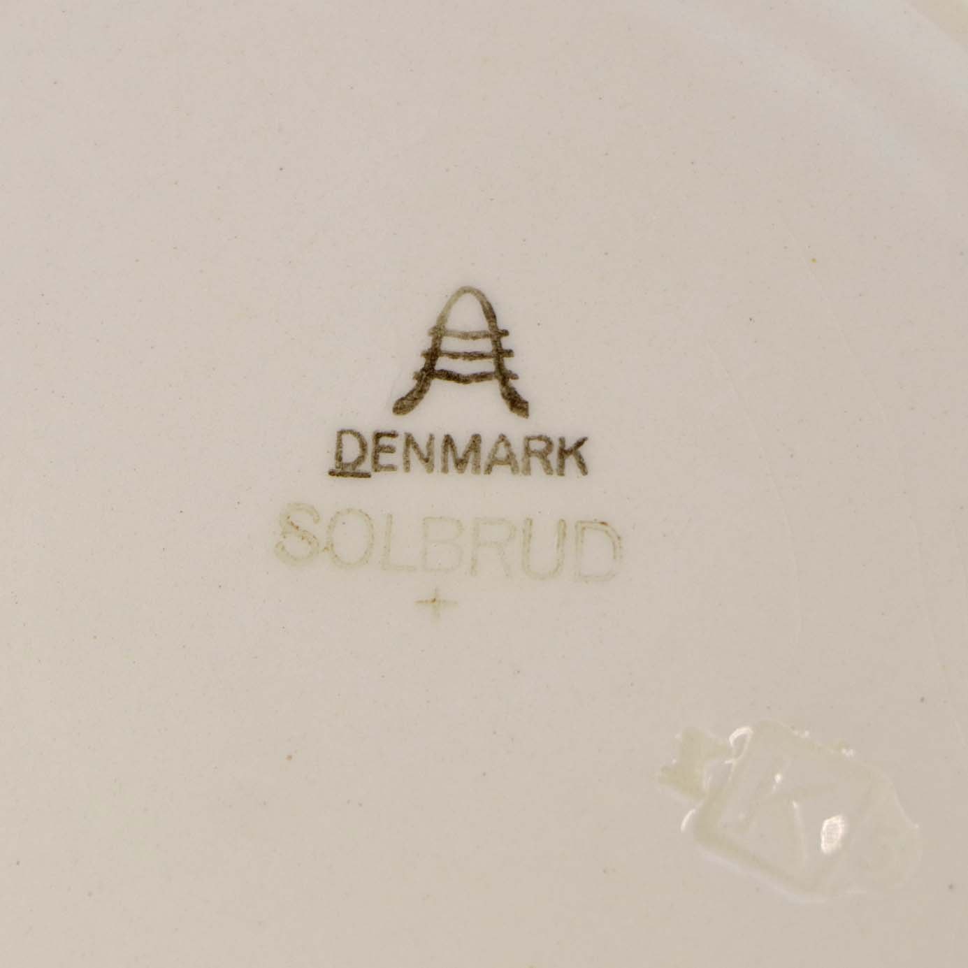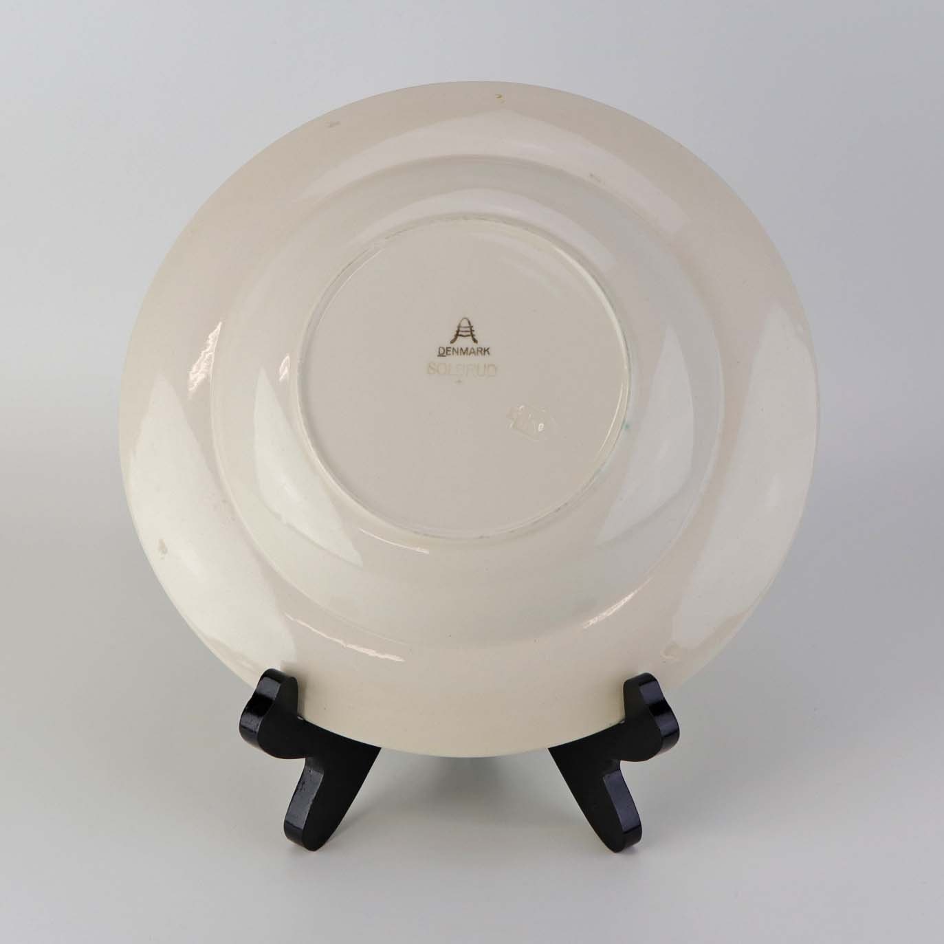 Dyb suppetallerken i fajance fra stellet Solbrud fremstillet i perioden 1937-1967