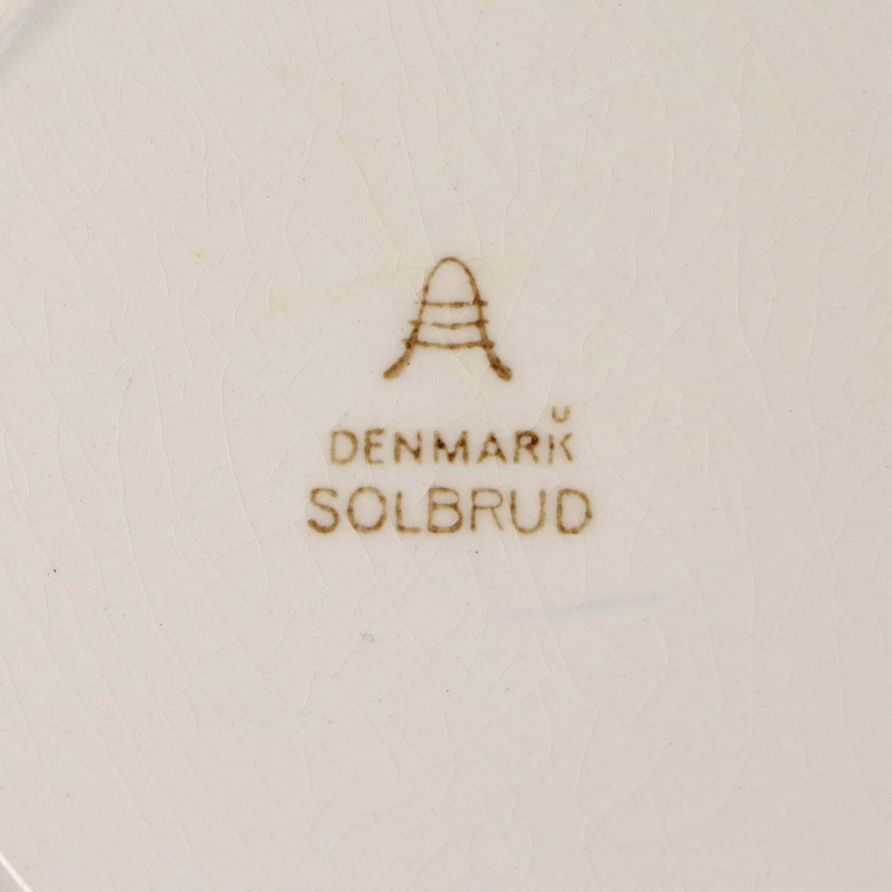 Desserttallerken i fajance fra stellet Solbrud fremstillet i perioden 1937-1967