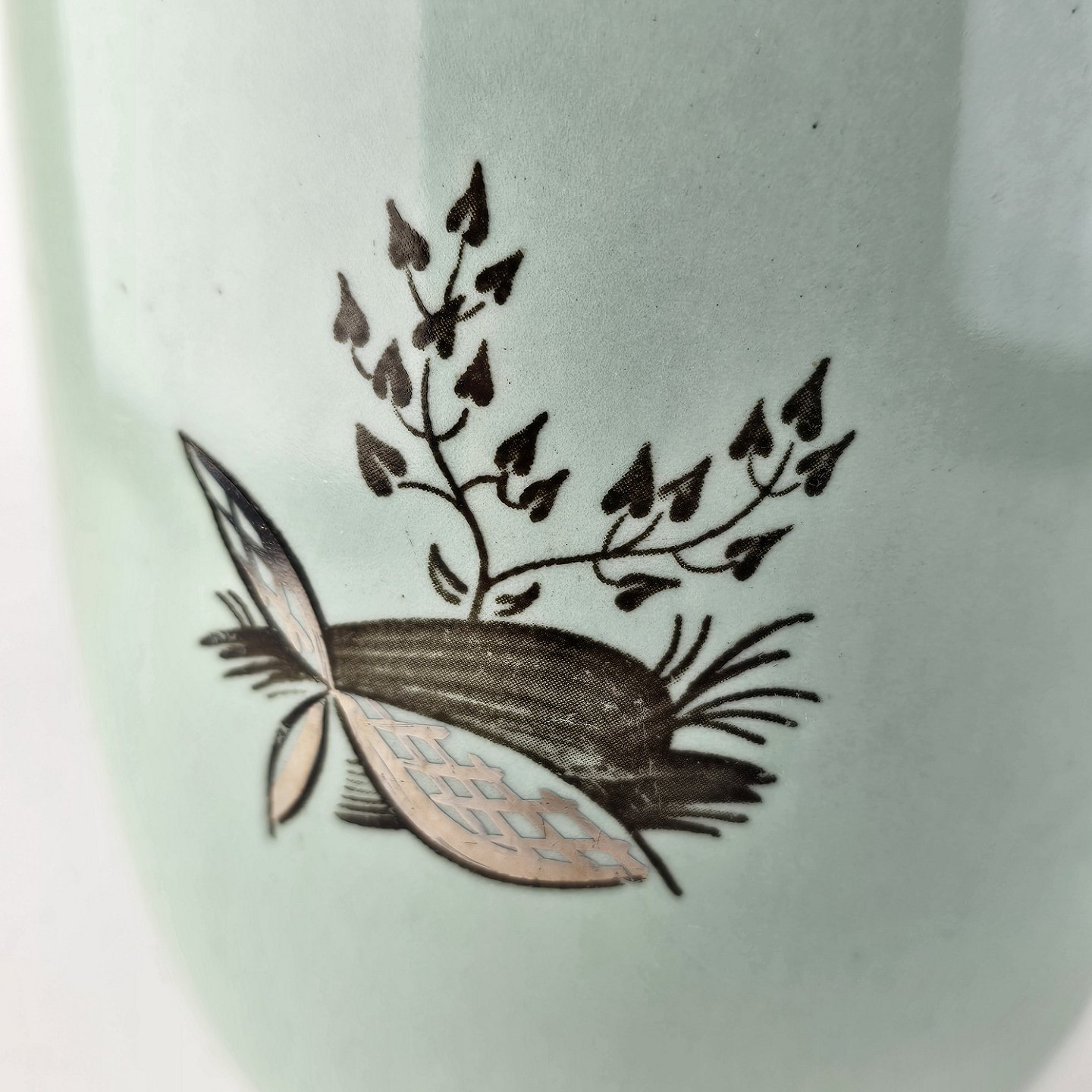 Kande med art nouveau håndtag i fajance fra stellet Saltholm