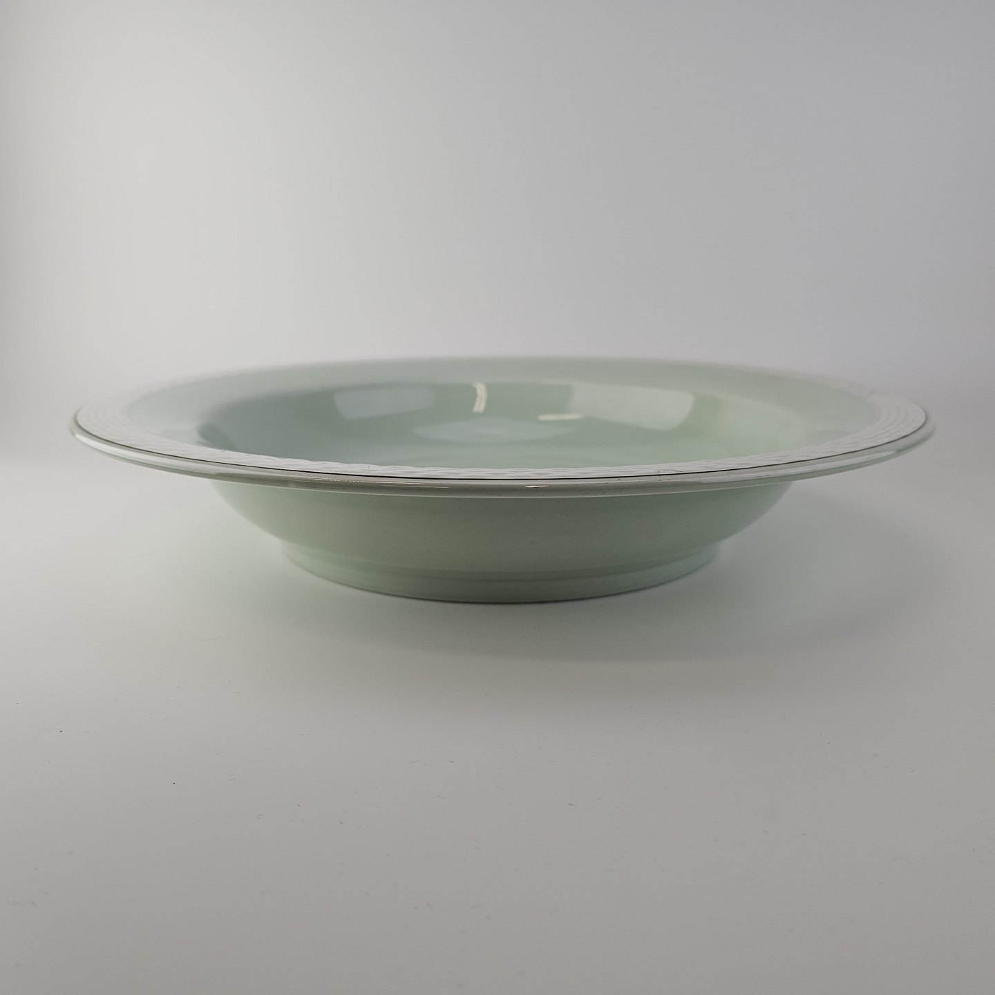 Stel i lysegrøn fajance med natur dekoration og flettet kant