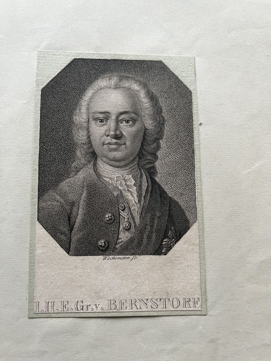 Kobberstik af Anton Wachsmann - Portræt af Lensgreve Johan Hartwig Ernst von Bernstorff.