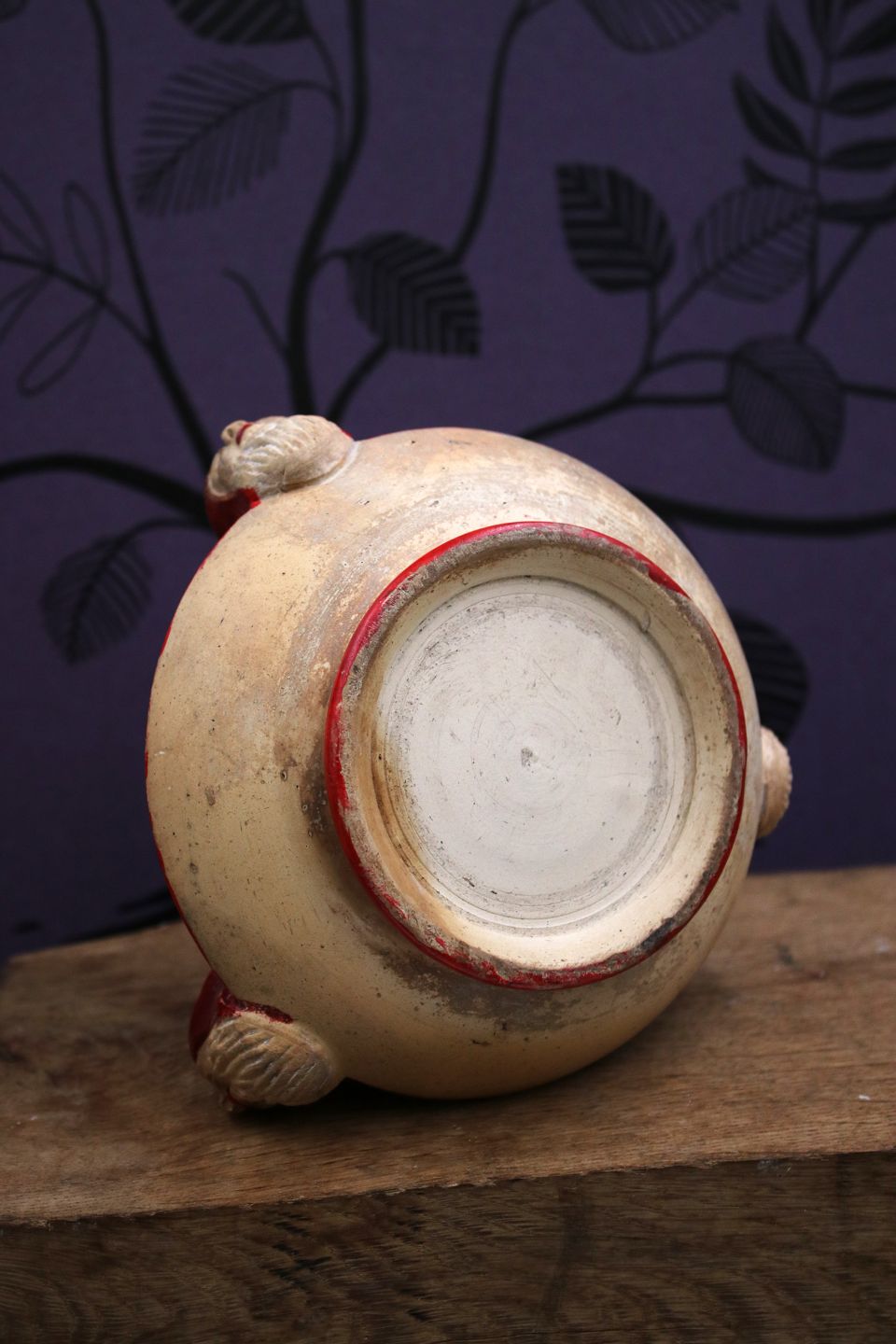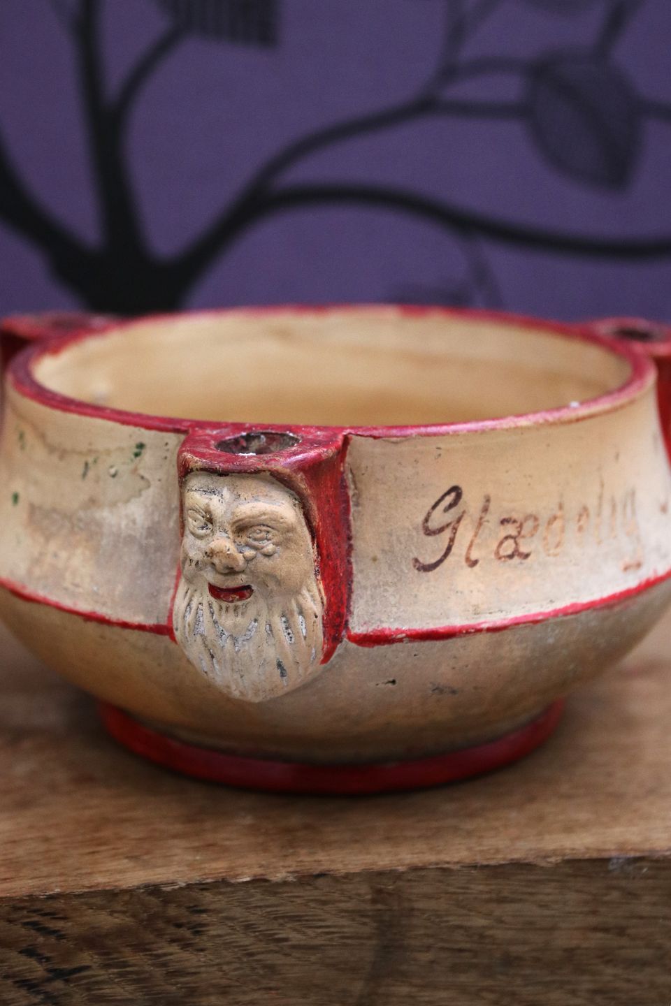 Fin , gammel jule skål i terrakotta dekoreret med 3 små nisse hoveder hvor der er plads til 3 små julestearinlys...