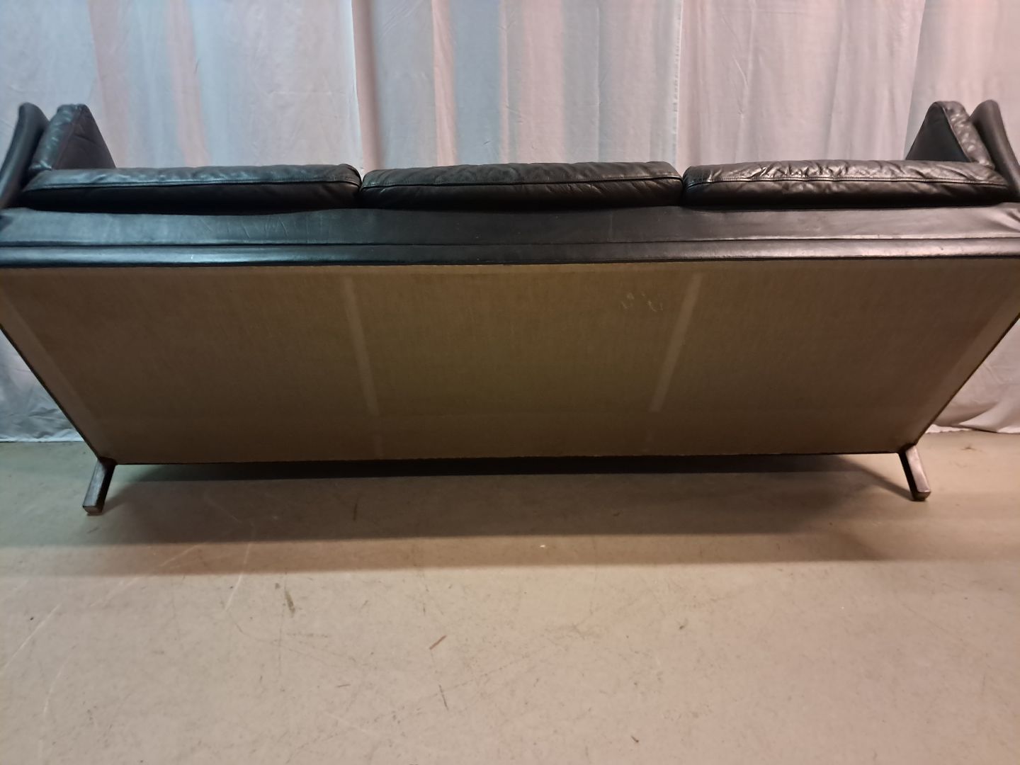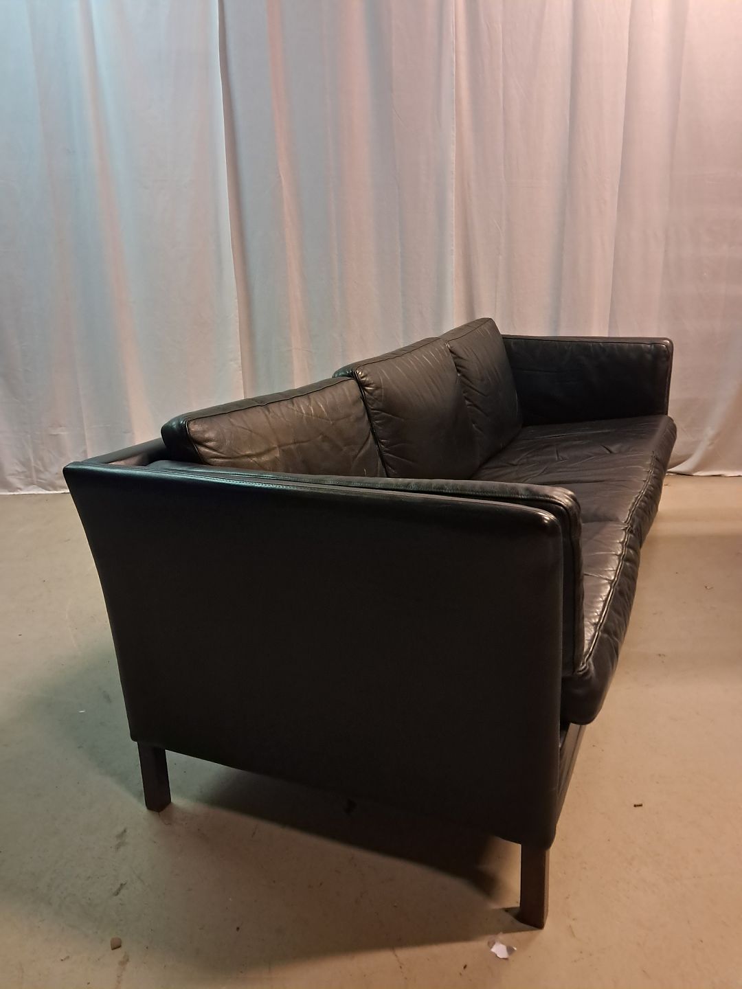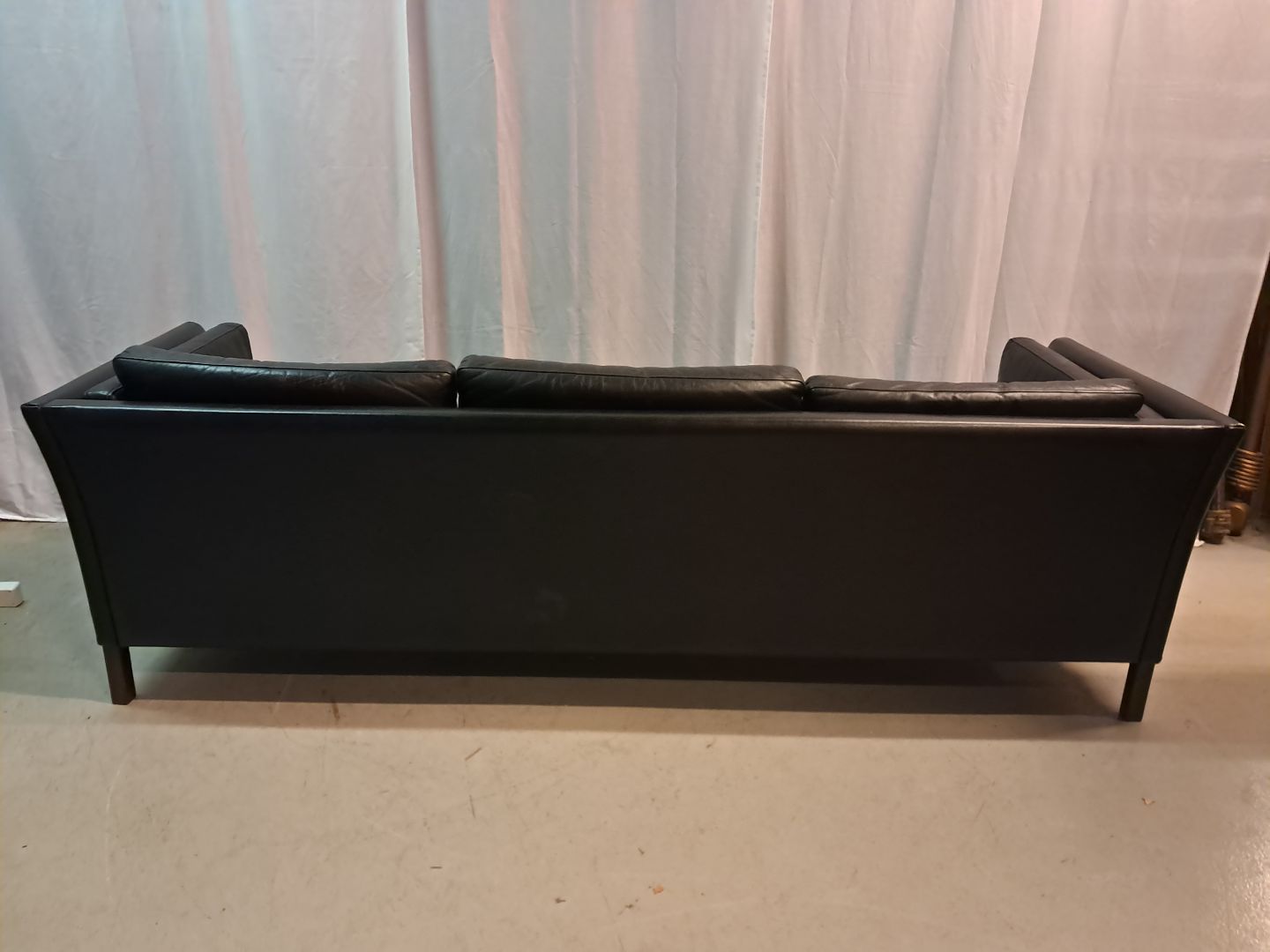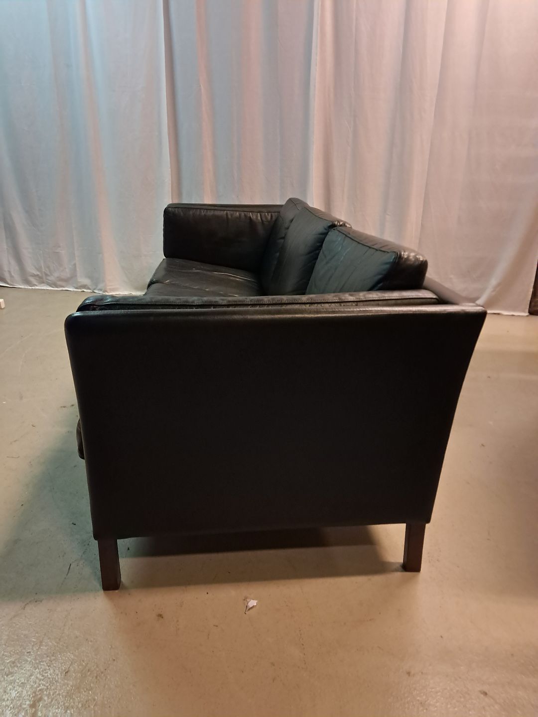 Sort lædersofa fra 1980erne.