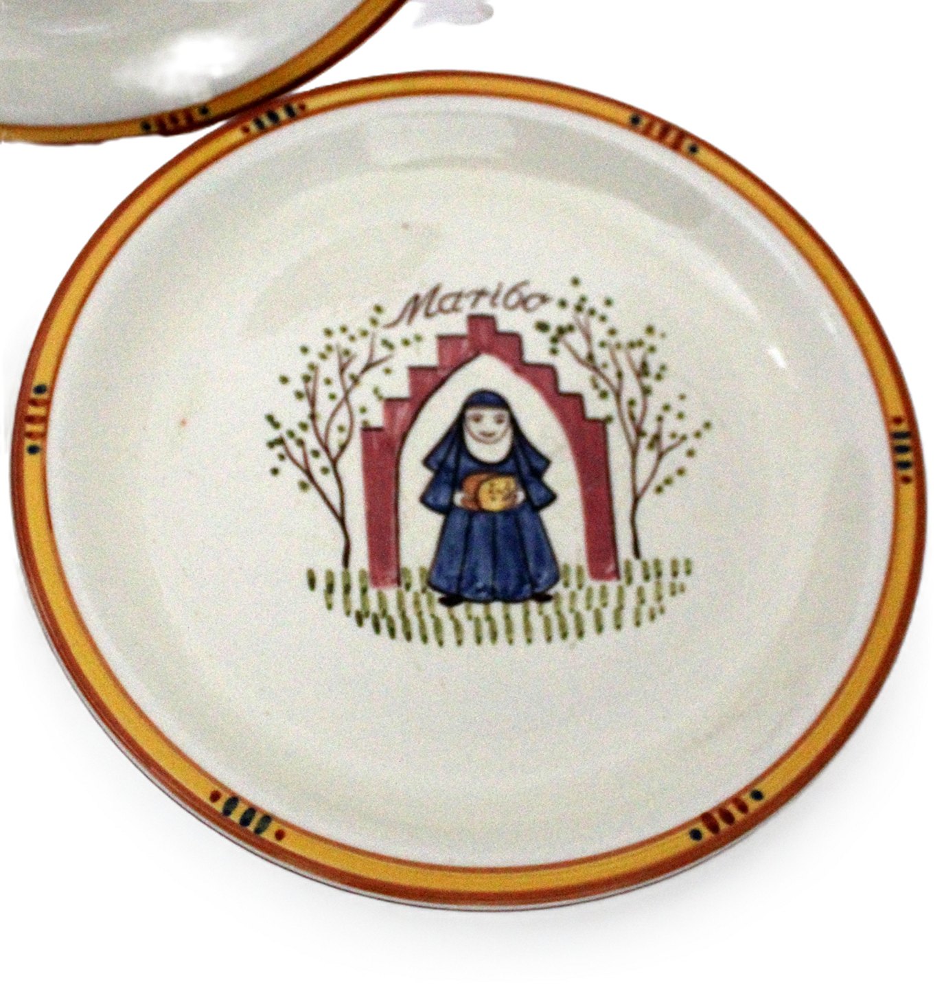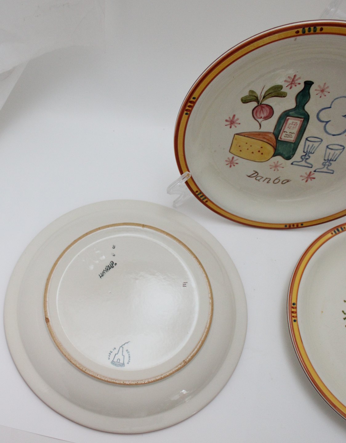 Knabstrup, Ostestellet. Formgivet af Johannes Hansen i 1959 og dekoreret af Paul Høyrup. Motiv og navn for de forskellige danske ostetyper, Fynbo, Molbo, Danbo, Maribo, Esrum og Samsø.