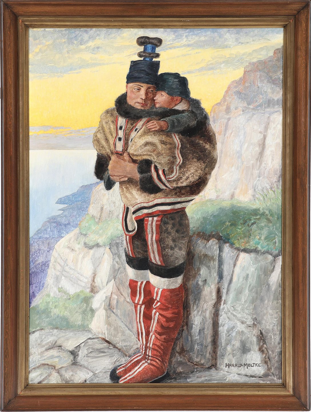 "Greenlandic woman with child" Oil painting on canvas in good original condition.