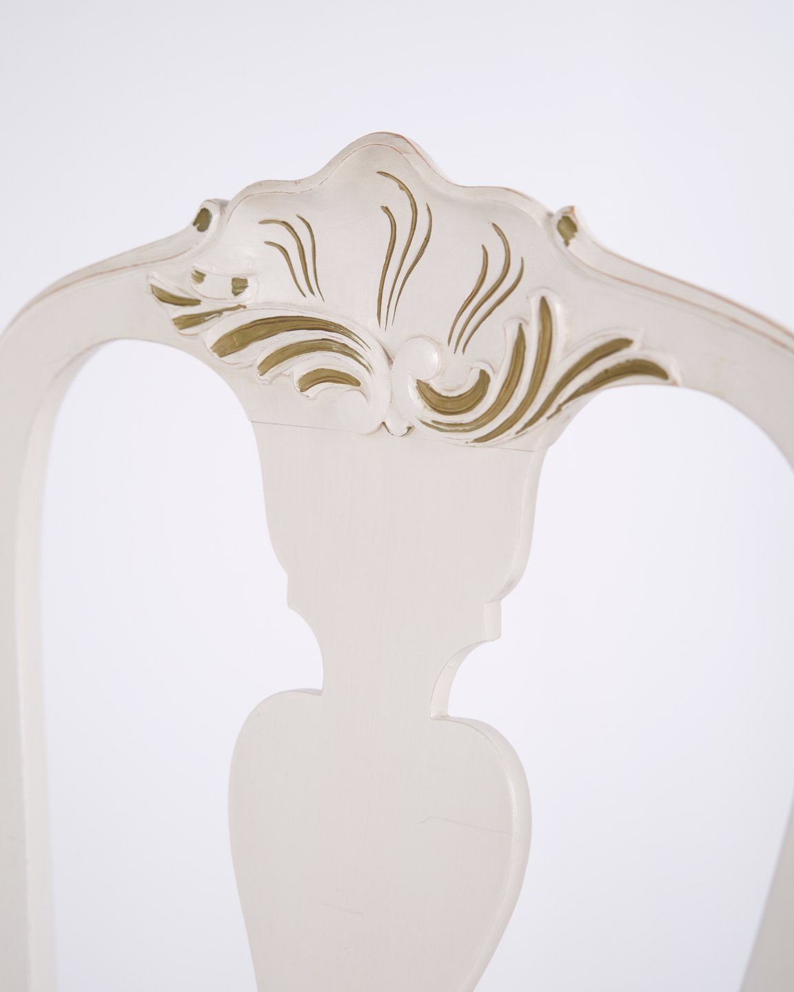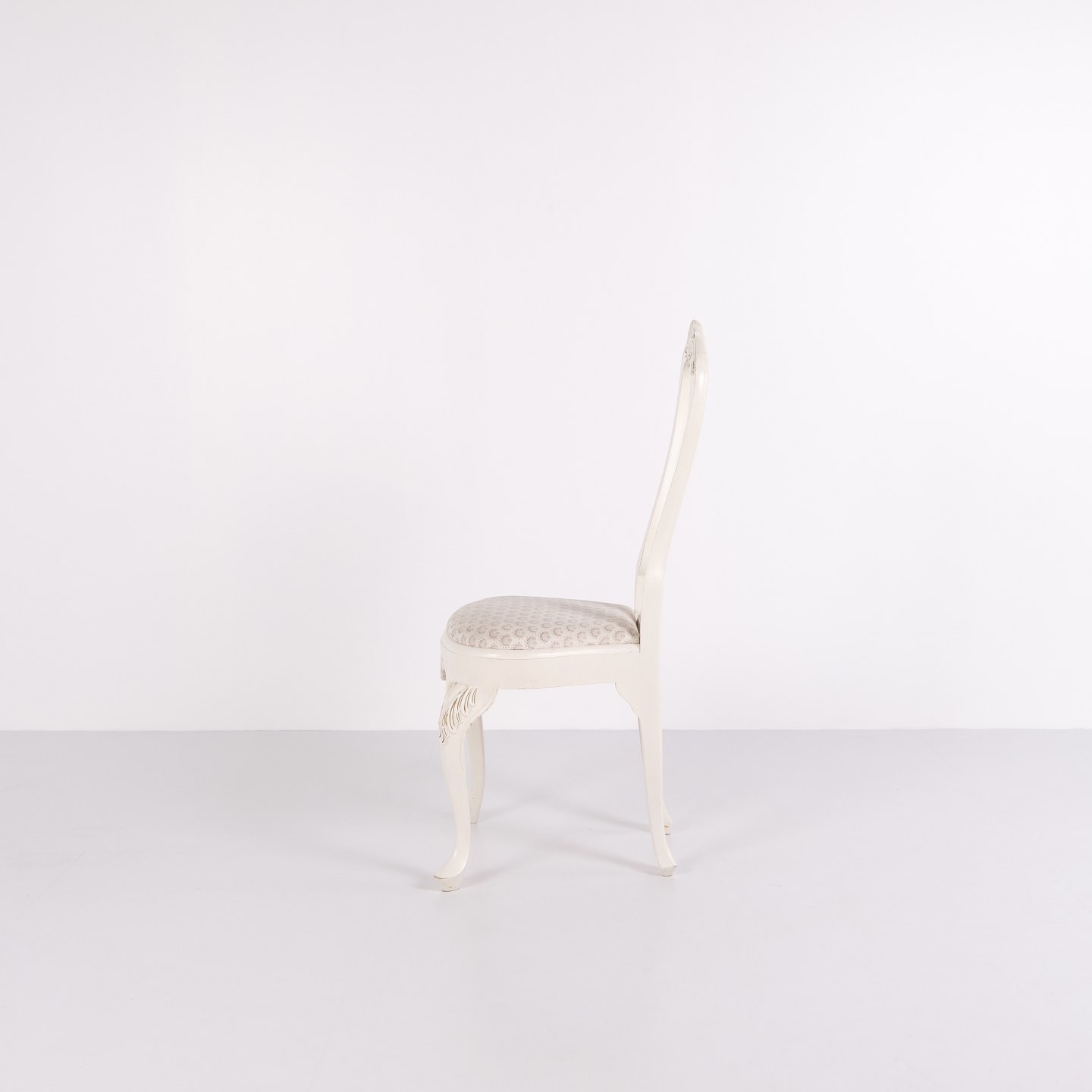 Sæt Af Seks Spisebordsstole - Ny Rokoko Stil - Hvidmalet Med Dekorative Detajler - År 1920erne