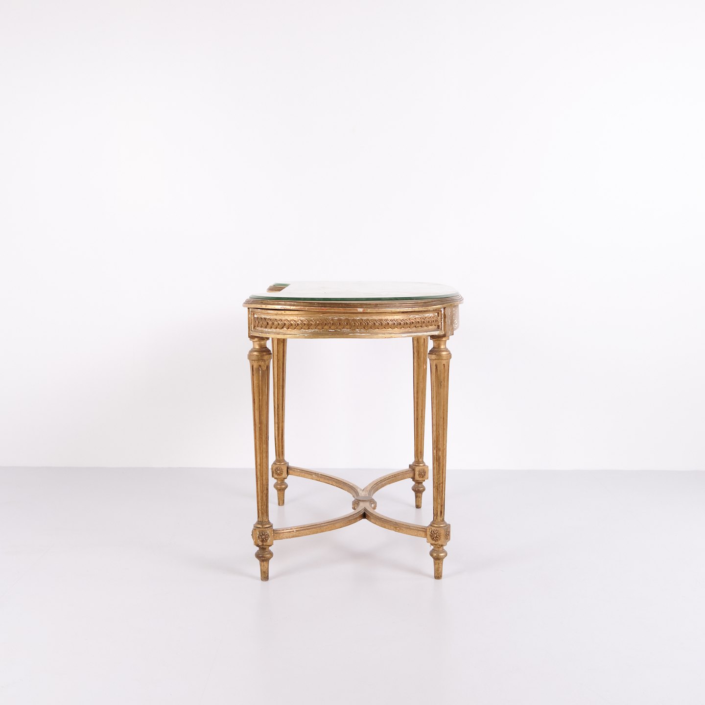 Antikt skrivebord 1850’erne i gustaviansk/Louis XVI stil, forgyldt træ, glasbordplade og skuffe.