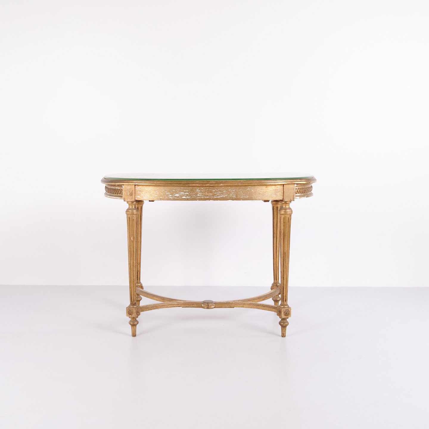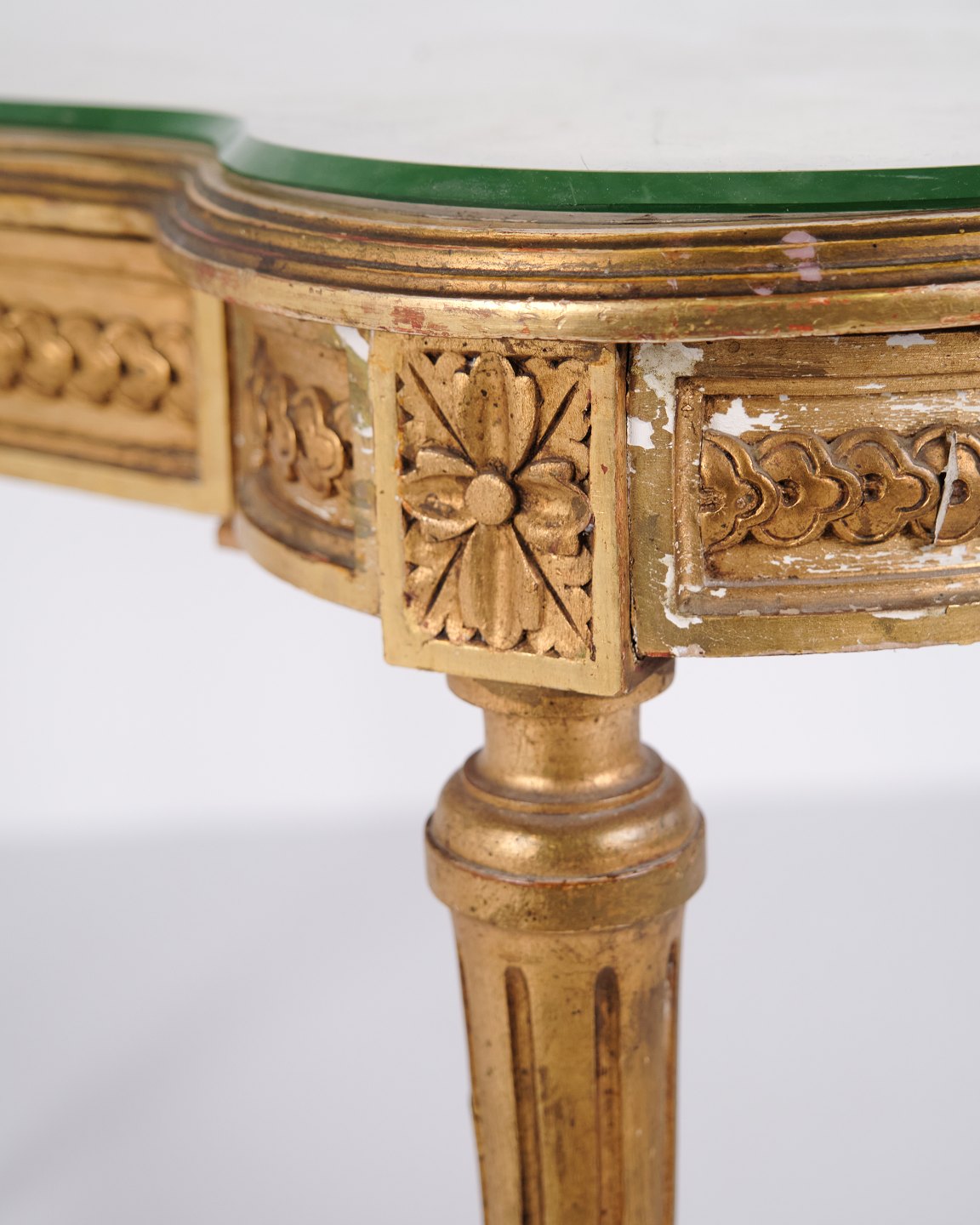 Antikt Skrivebord Med Glasbordplade & Skuffe – Gustaviansk/Louis XVI-stil – Forgyldt Træ – År 1850erne