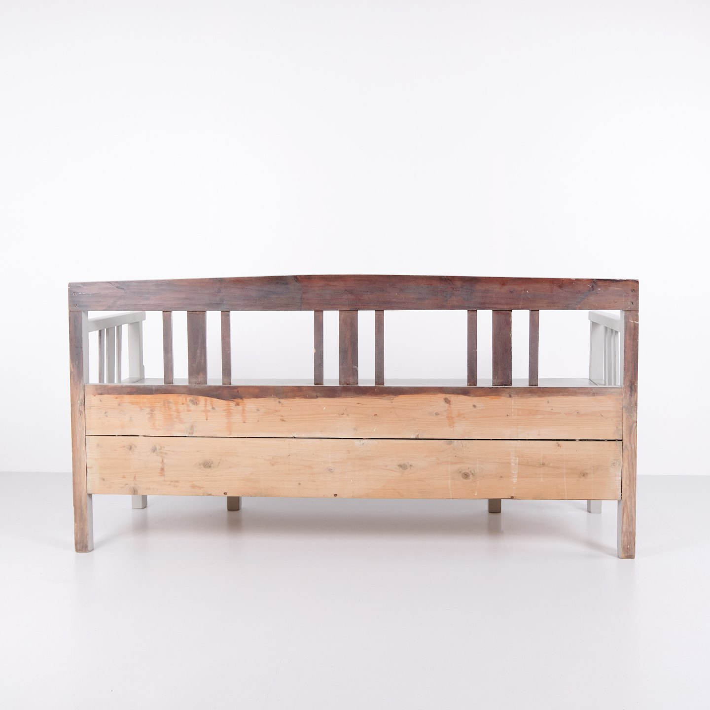 Antik Slagbænk Med Opbevaring - Gråmalet - Fyrretræ - År 1860erne
