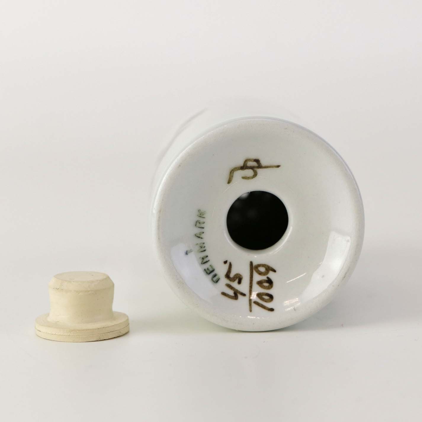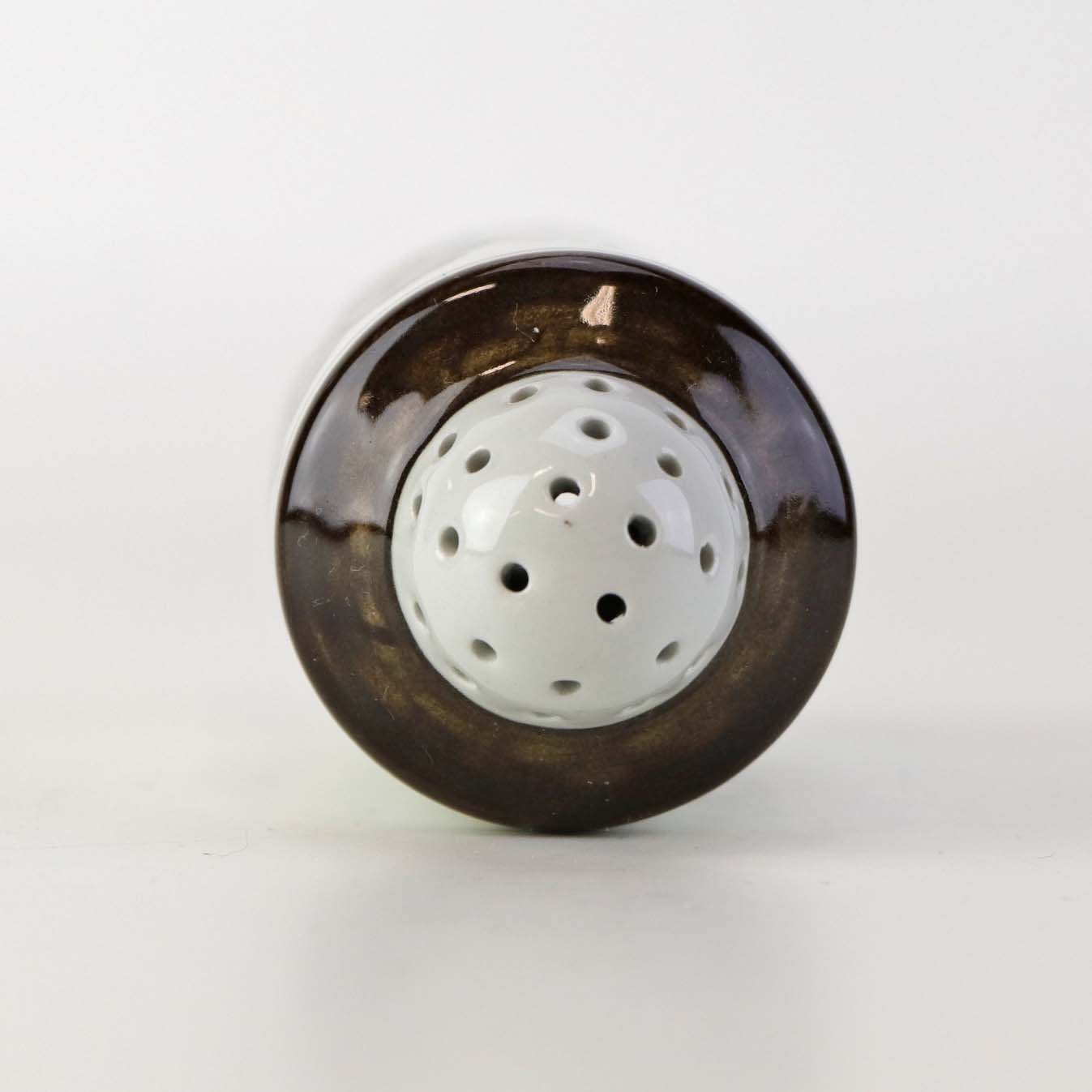 Peberbøsse i fajance fra stellet Brun Tranquebar fra år 1919. Nr 45/1009
