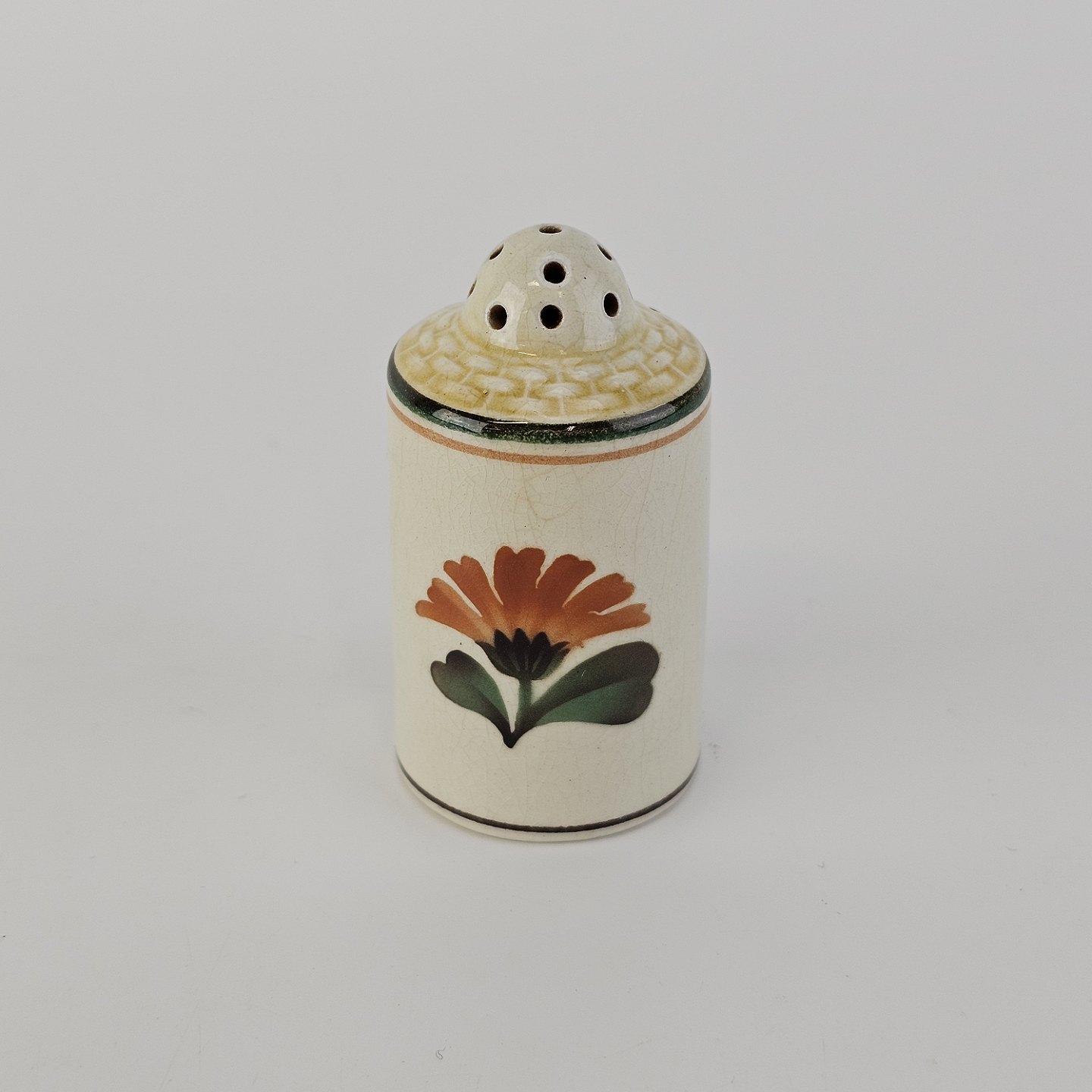 Saltbøsse eller peberbøsse i fajance fra stellet Morgenfrue