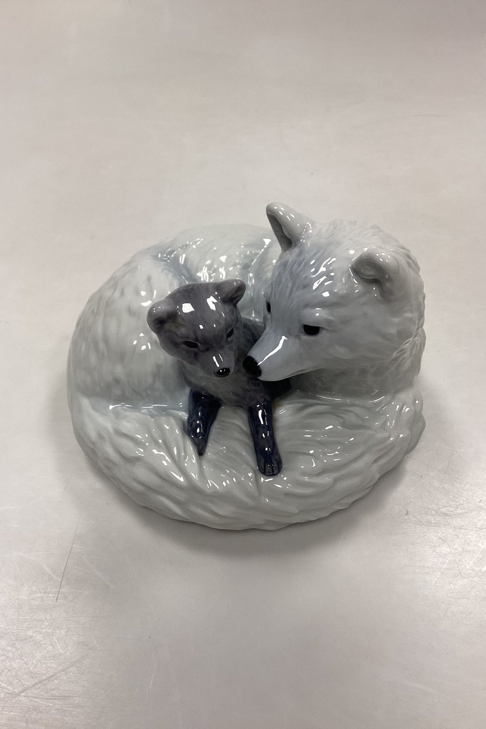 Royal Copenhagen Motherly Love Figur - Polarræv med Unge No. 443
