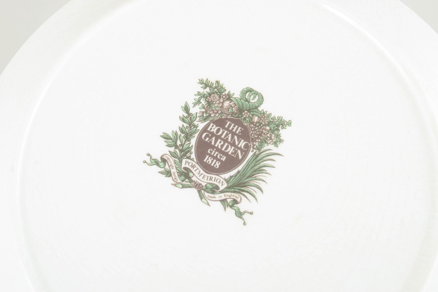 Portmeirion blev grundlagt i England og er især kendt for sine dekorative stel med klare, genkendelige motiver. “The Botanic Garden” serien er kendetegnet ved naturtro, botaniske illustrationer inspireret af klassiske planteværker, kombineret med en grøn bladbort, som giver et tidløst udtryk og har gjort serien populær blandt samlere.