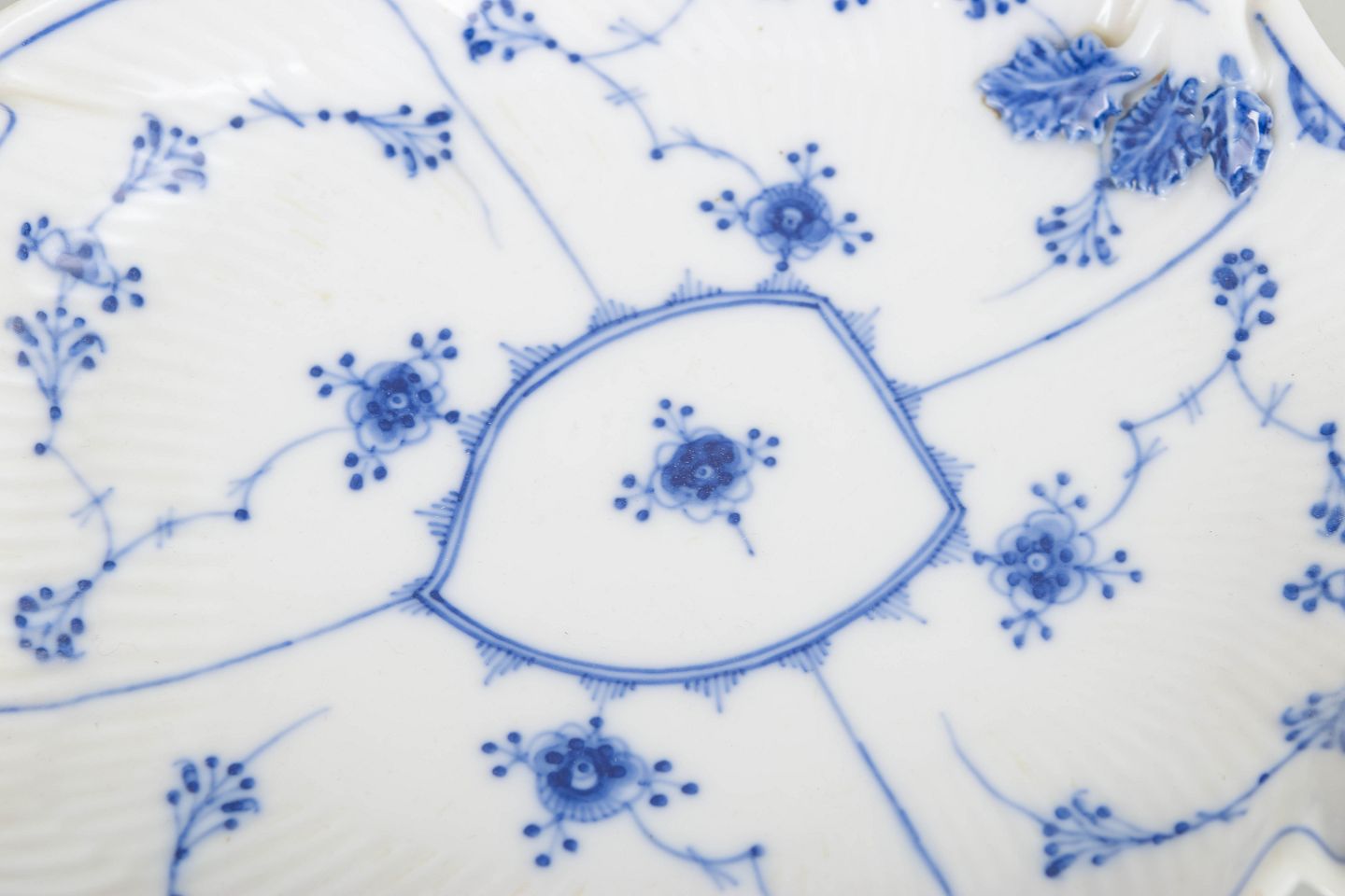 Royal Copenhagen, Musselmalet Riflet bladformet antikt fad med hank.
