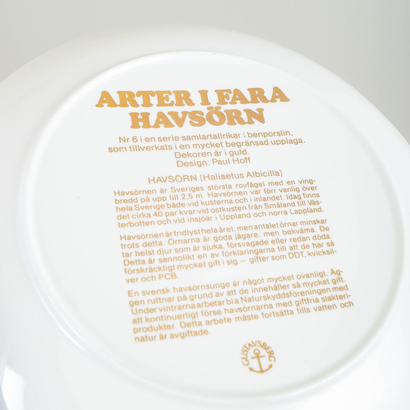 Gustavsberg udgav i 1980’erne en række samlertallerkener med fokus på truede arter, ofte med naturmotiver i metaldekoration og informativ tekst på bagsiden. Serien kombinerer grafisk præcision og dekorativt udtryk og blev typisk produceret i begrænsede oplag til samlere.