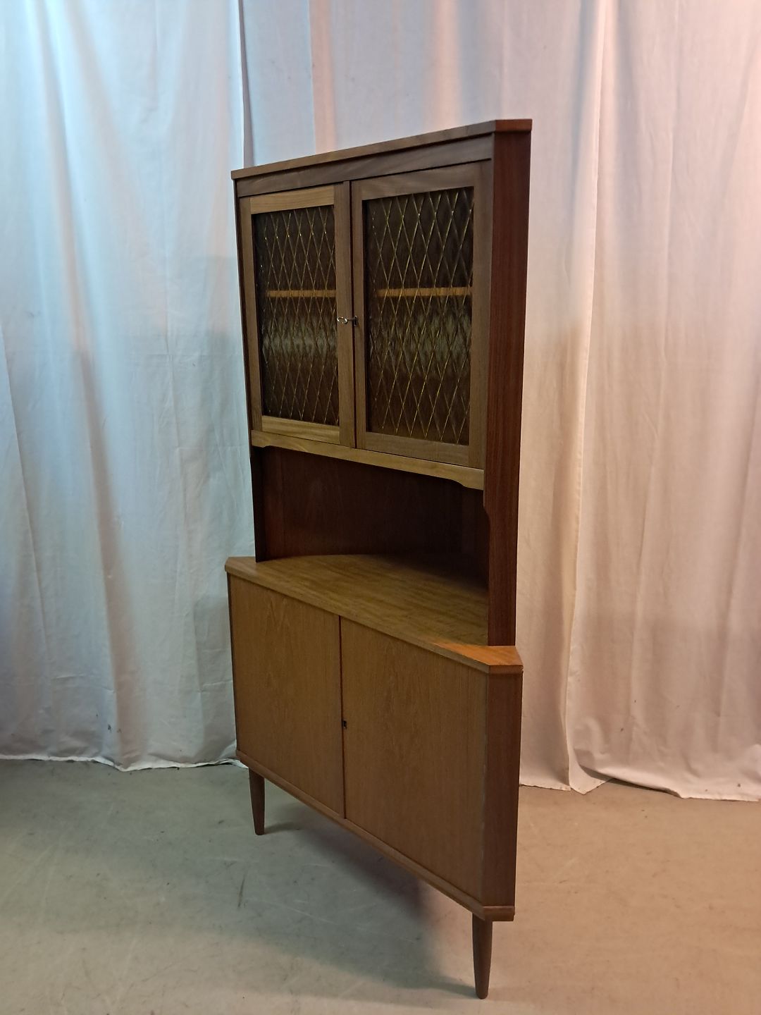 Hjørneskab i fineret teaktræ, fra 1960erne.