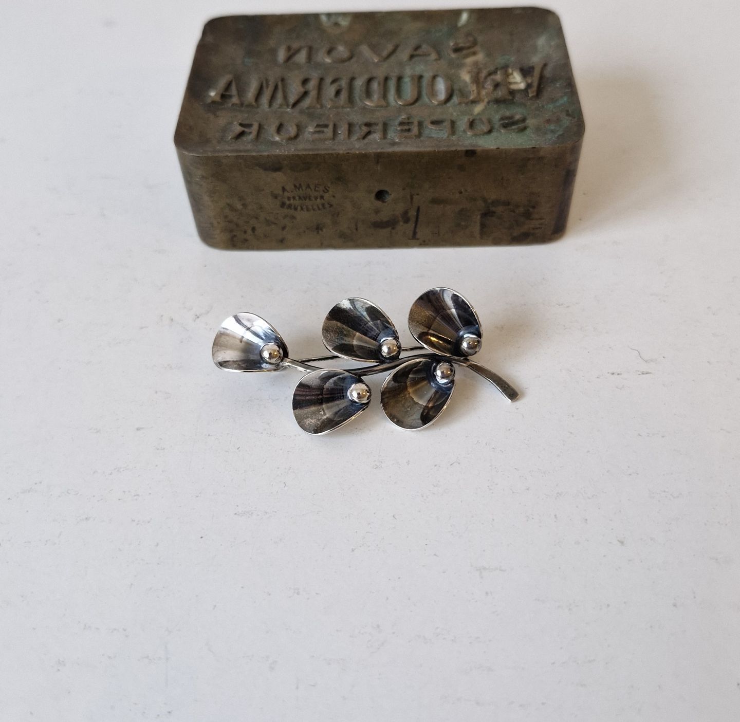 N.E.From vintage broche i sterlingsølv i form af gren med blade