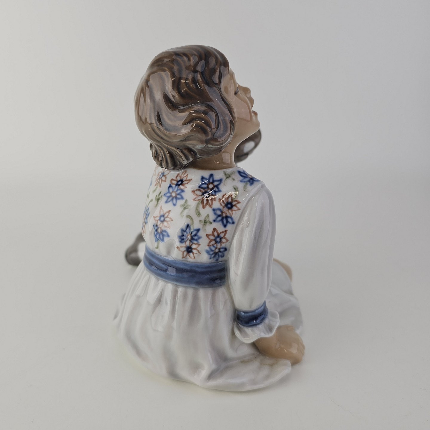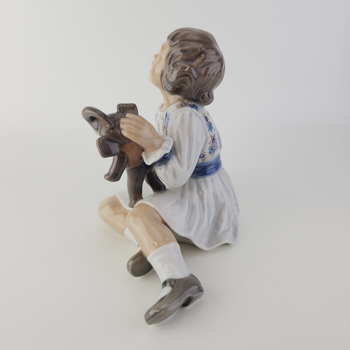 Figur i porcelæn med motiv af en pige med en legetøjselefant